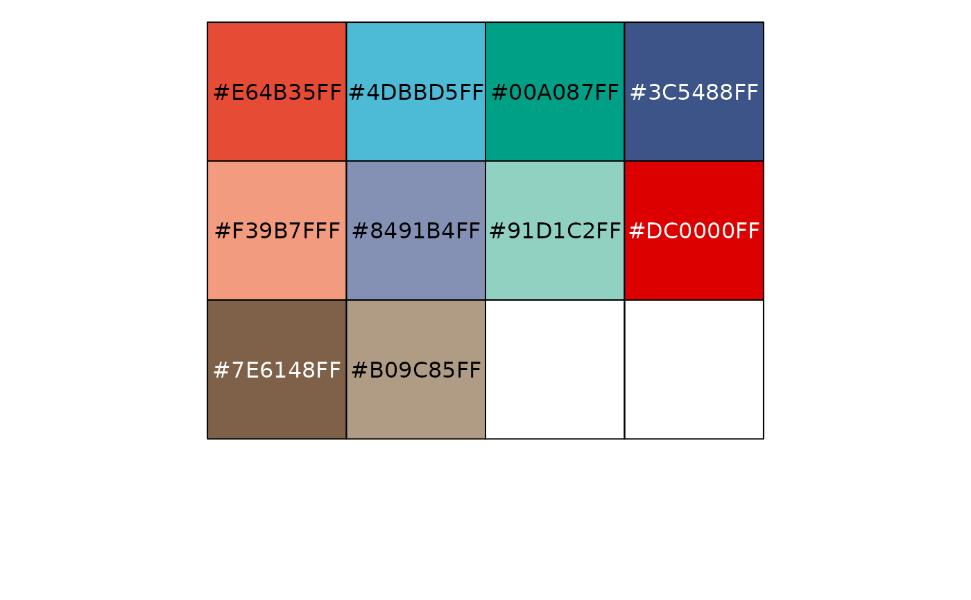 pal_npg(palette = c("nrc"), alpha = 1)