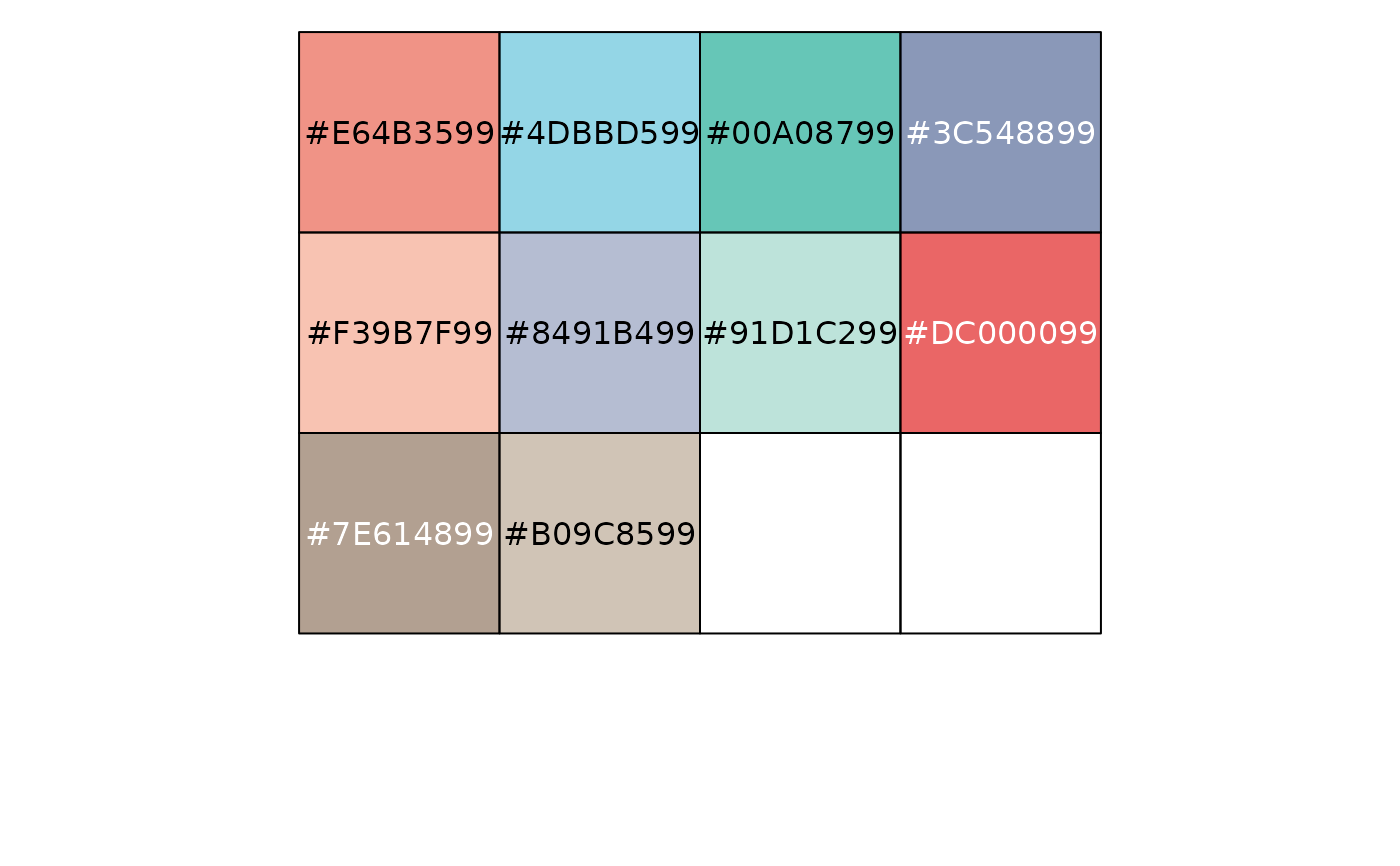 show_col(pal_npg("nrc", alpha = 0.6)(10))