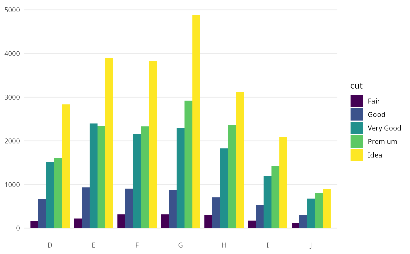 example_barplot() creates a side‑by‑side bar chart of diamond counts