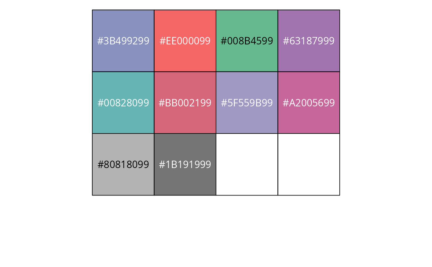 pal_aaas(palette = c("default"), alpha = 1)Arguments