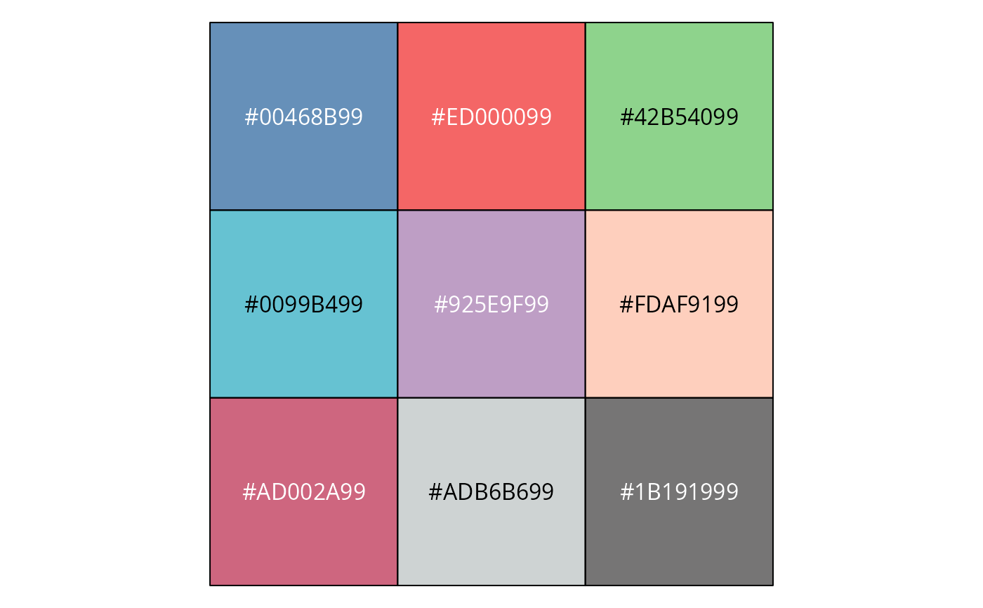 "lanonc"(9-color palette inspired by Lancet Oncology).- alpha