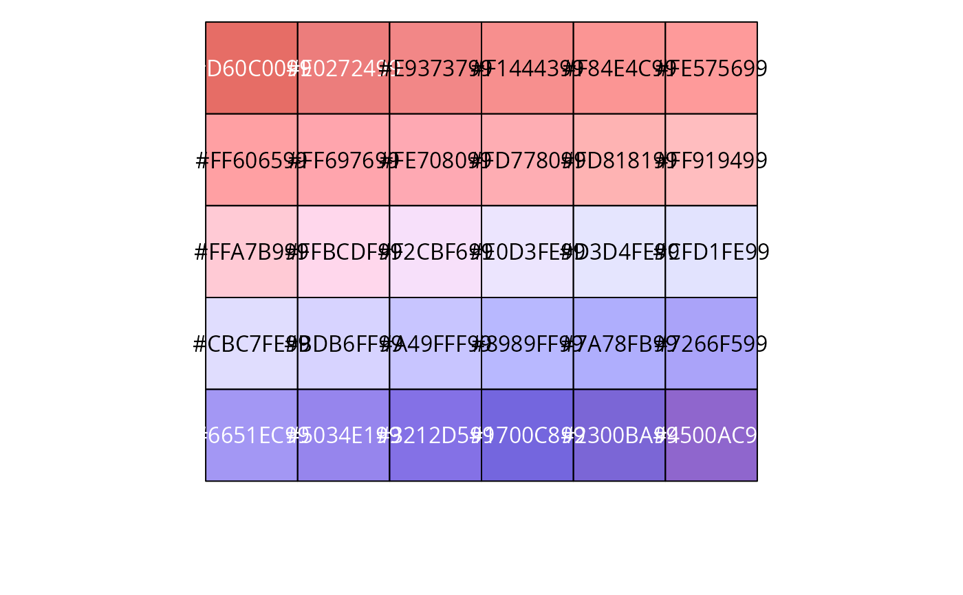 rgb_gsea(palette = c("default"), n = 12, alpha = 1, reverse = FALSE)Arguments