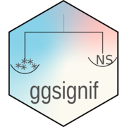 This package provides an easy way to indicate if two groups are significantly different. Commonly this is shown by a bar on top connecting the groups of interest which itself is annotated with the level of significance (NS, *, **, ***). The package provides a single layer (geom_signif) that takes the groups for comparison and the test (t.test, wilcox etc.) and adds the annotation to the plot.