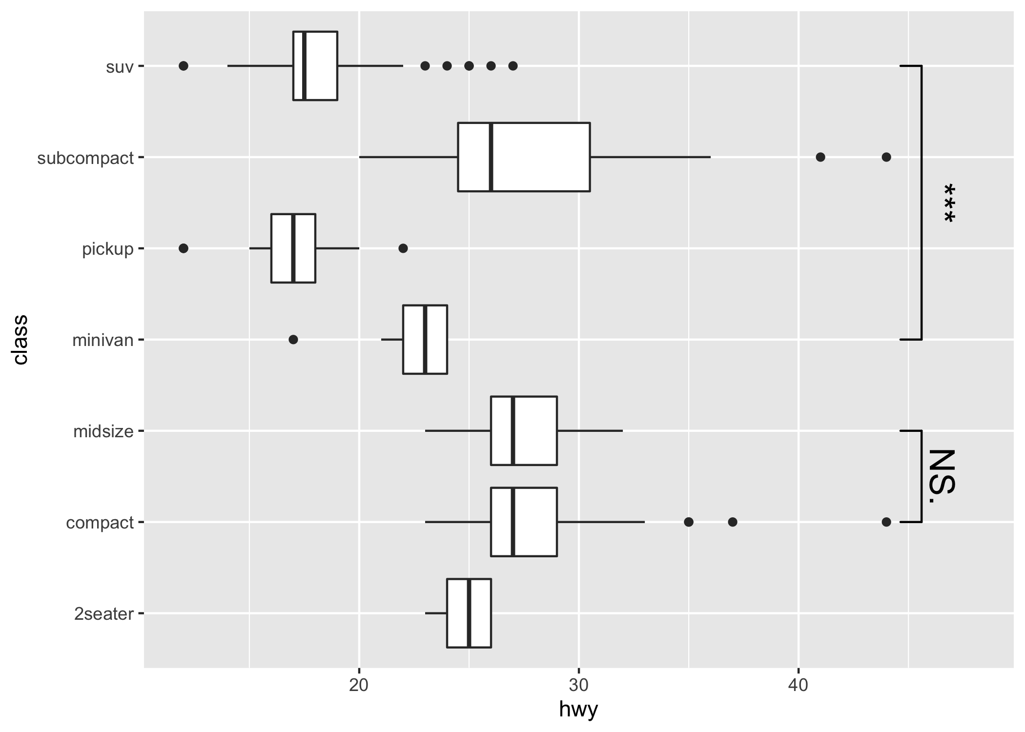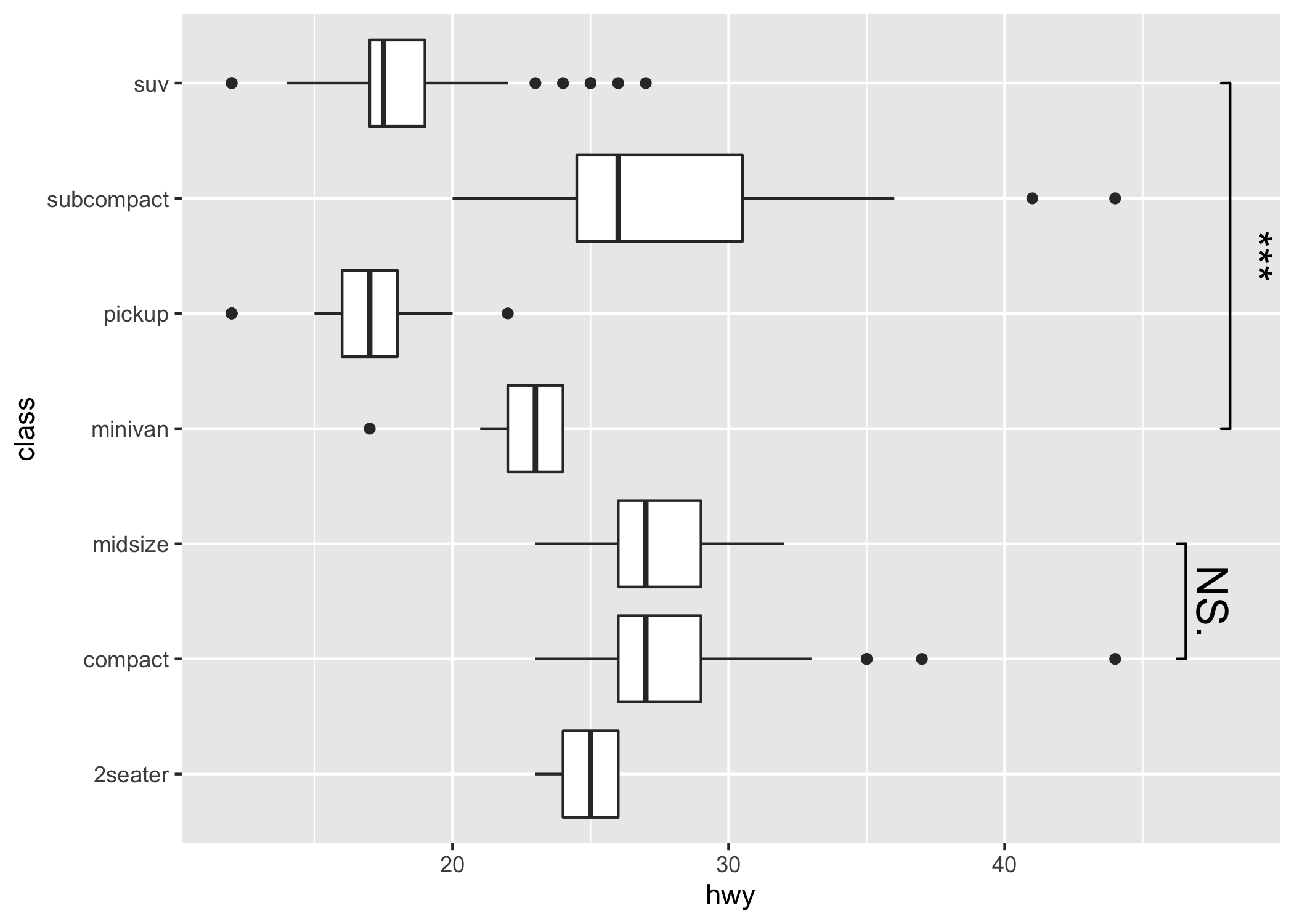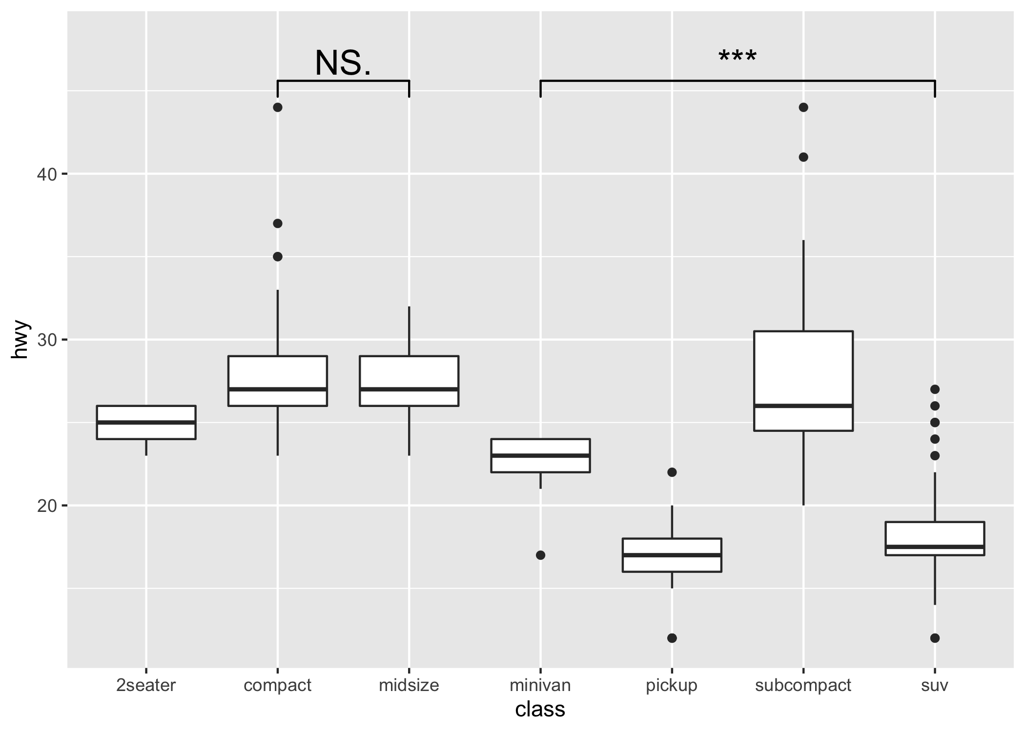 comparisons = list(c("compact", "midsize"), c("minivan", "suv")),