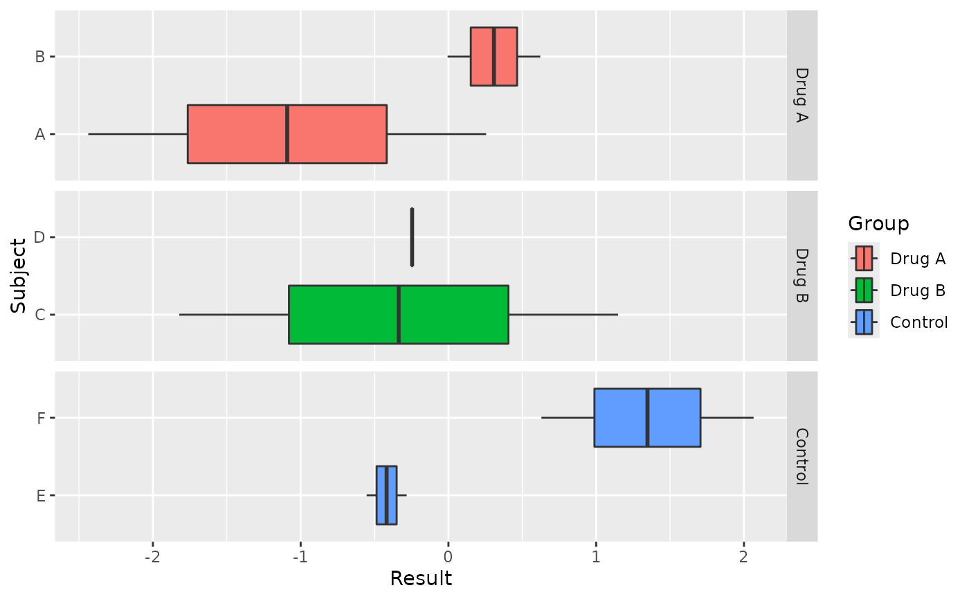 Group = factor(rep(1:3, each = 4), labels = c("Drug A", "Drug B", "Control")),