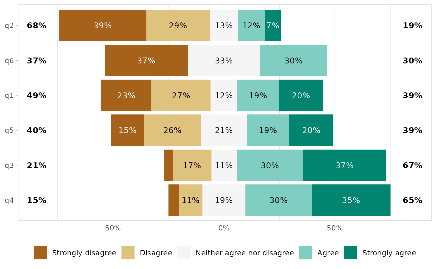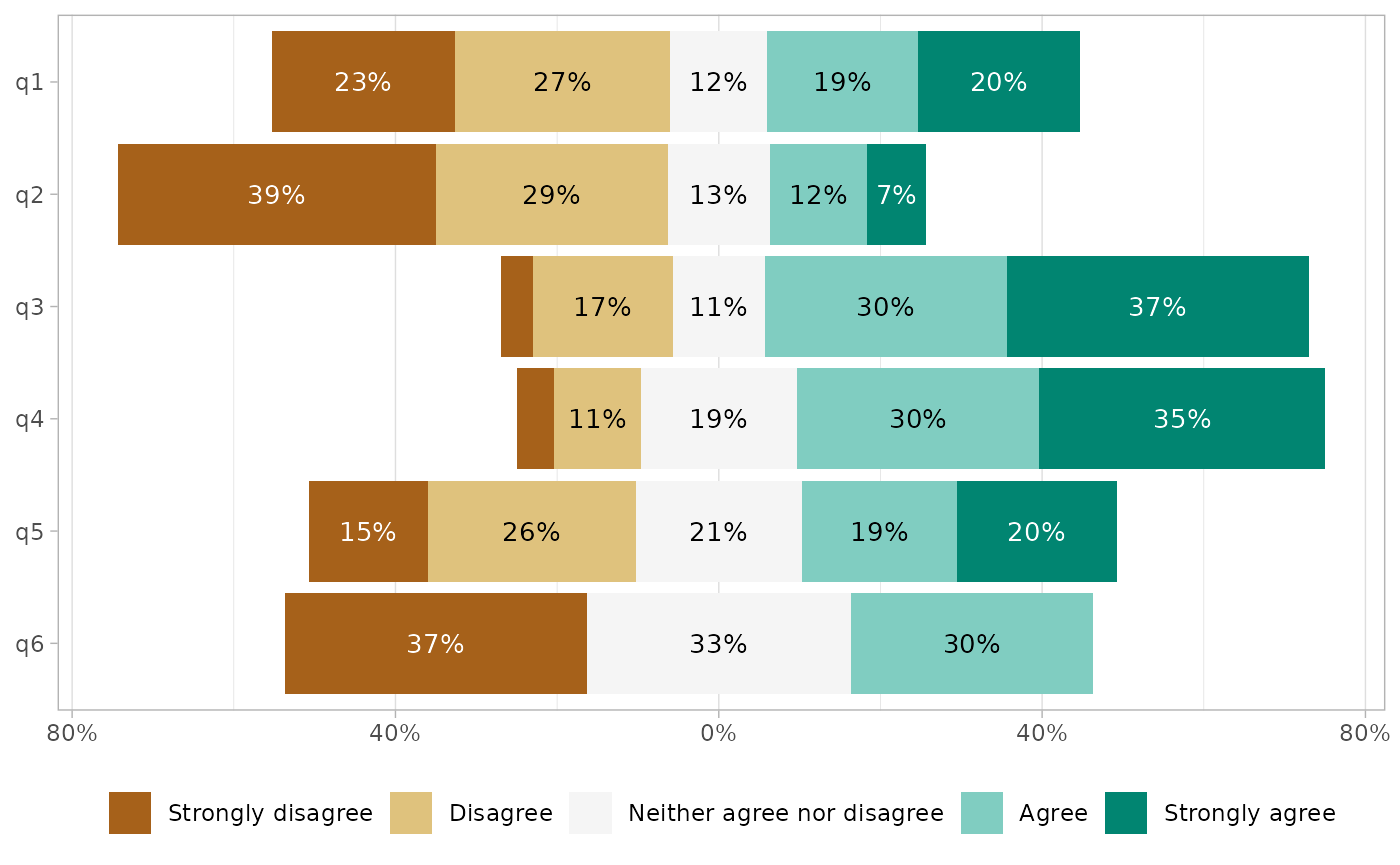 mutate(across(everything(), ~ factor(.x, levels = likert_levels_dk)))Simply call gglikert().