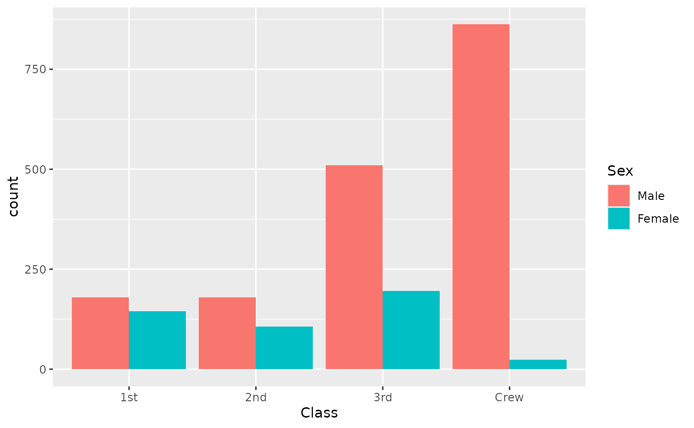aes(x = Class, fill = Sex, weight = Freq, by = Sex) +