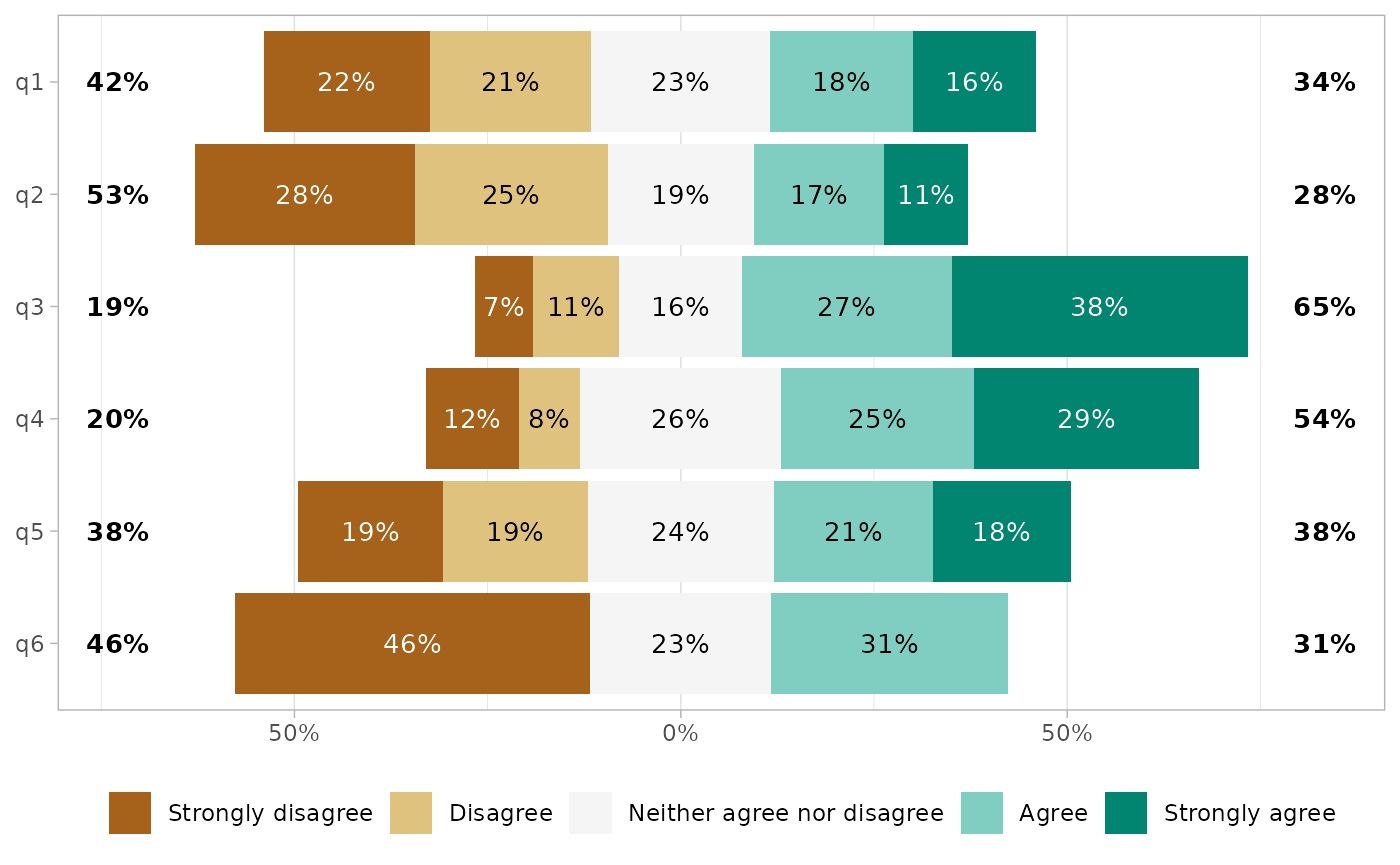 mutate(across(everything(), ~ factor(.x, levels = likert_levels_dk)))Simply call gglikert().