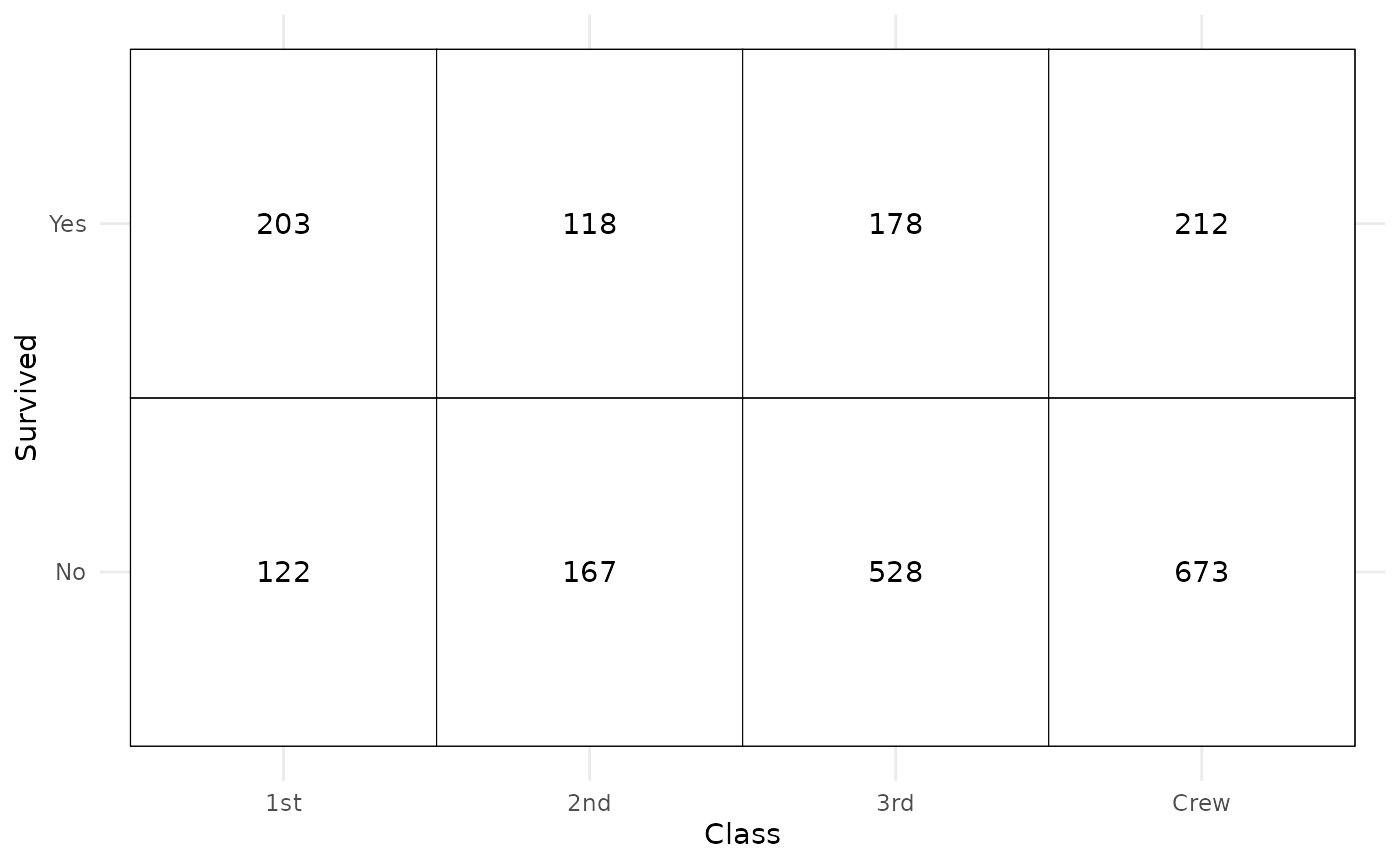 aes(x = Class, y = Survived, weight = Freq) +