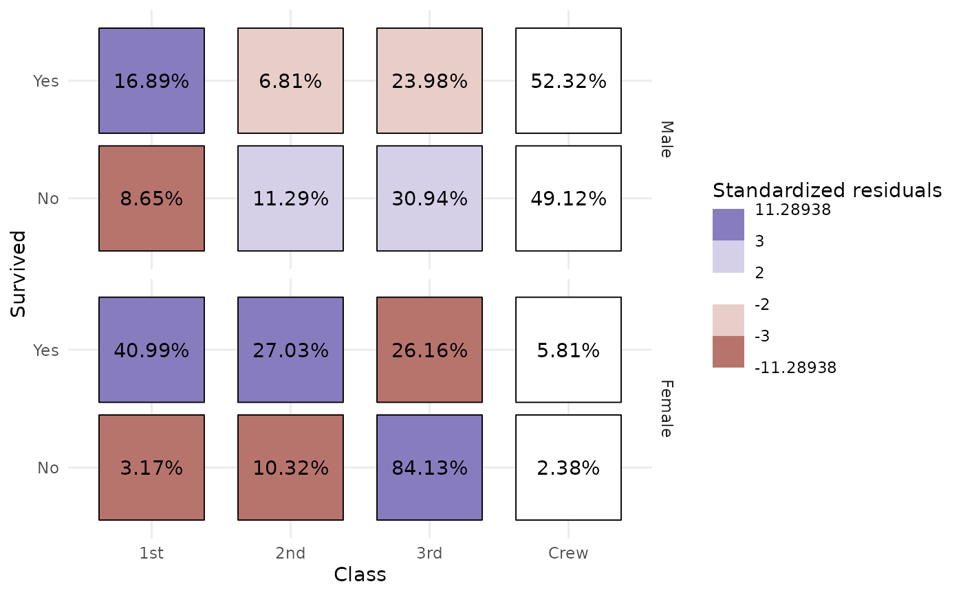 x = Class, y = Survived, weight = Freq, label = after_stat(observed)