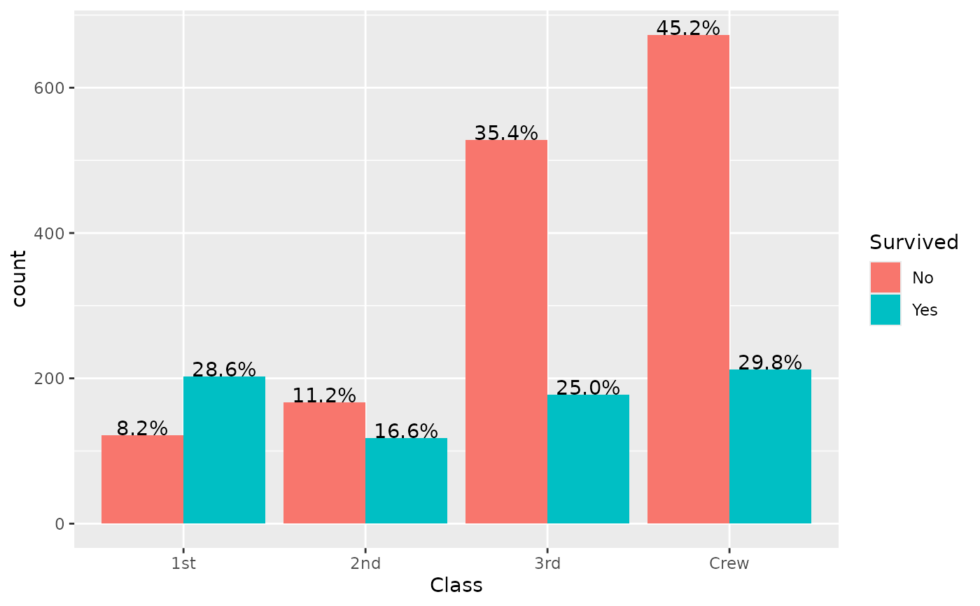 aes(x = Class, fill = Survived, weight = Freq, by = Class) +