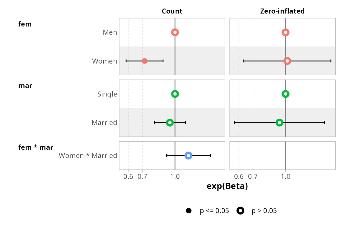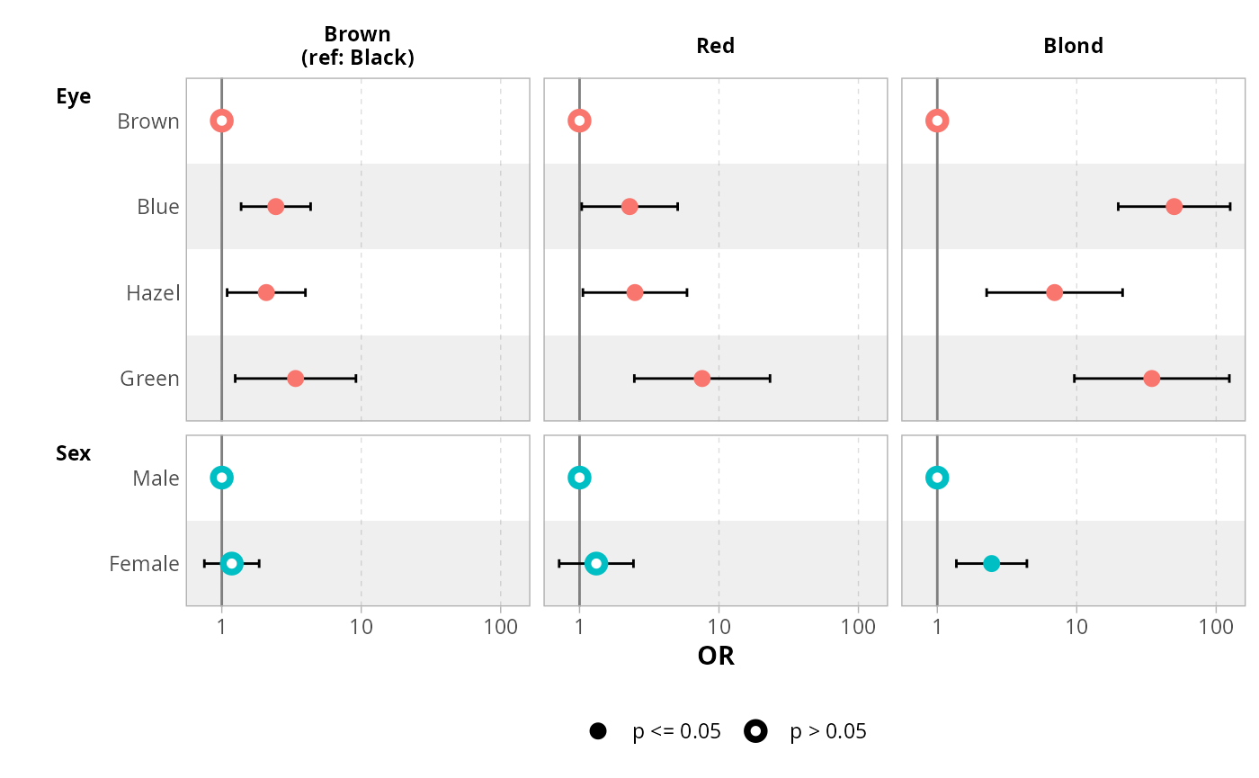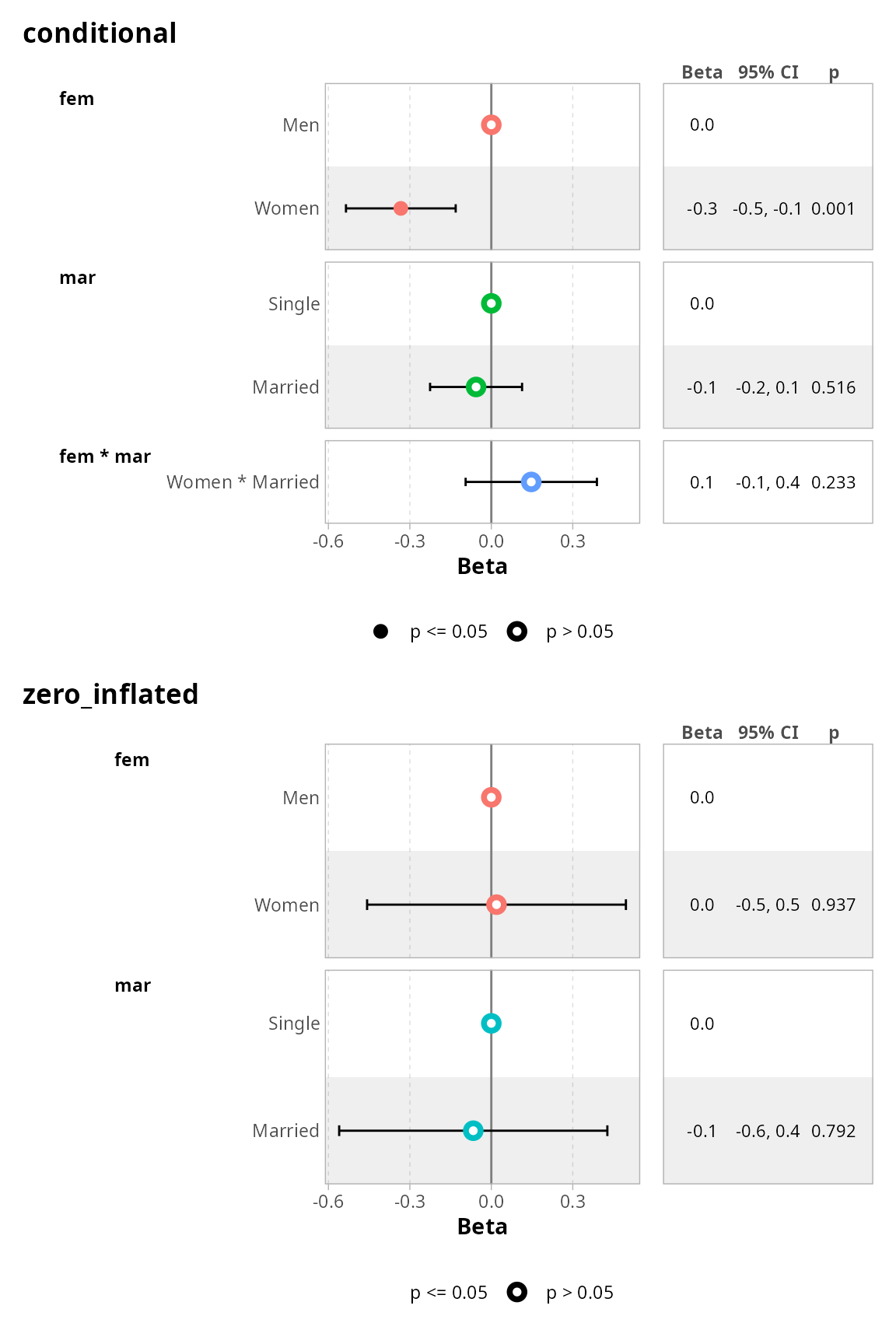 By default, for categorical variables using treatment and sum contrasts, reference rows will be added and displayed on the graph.