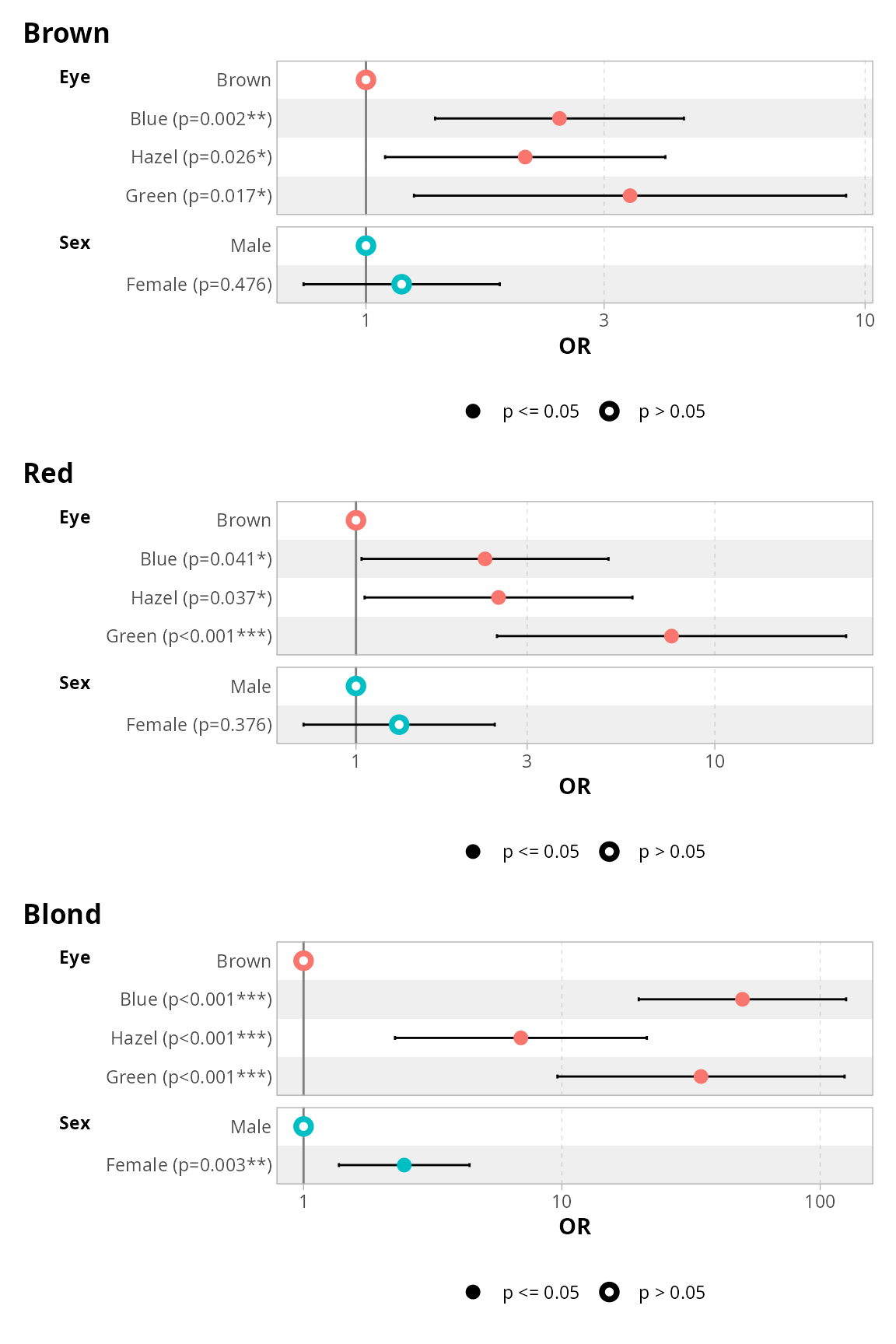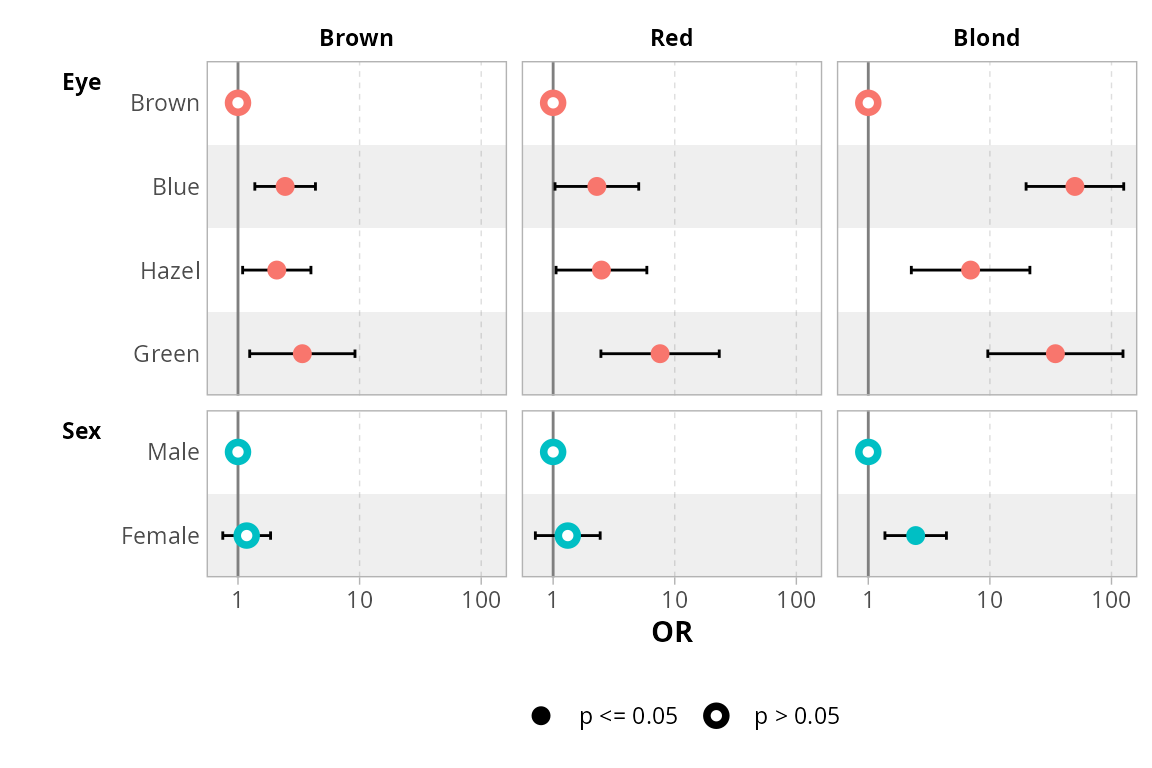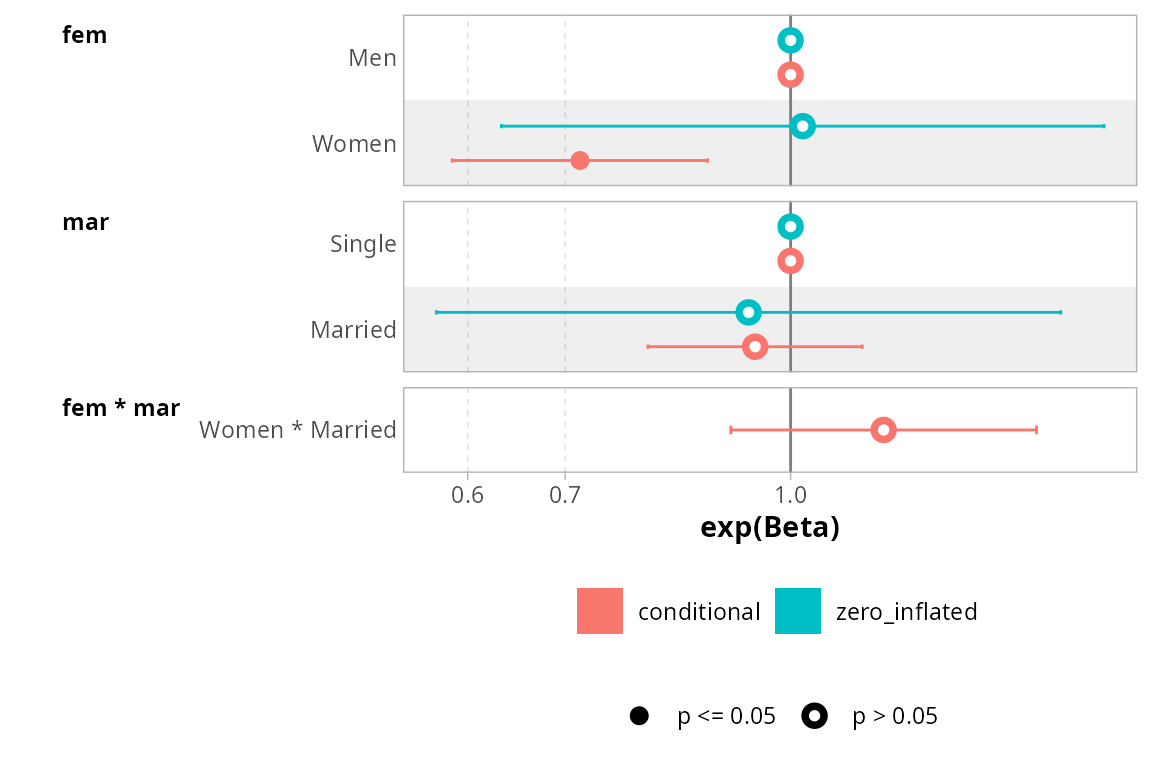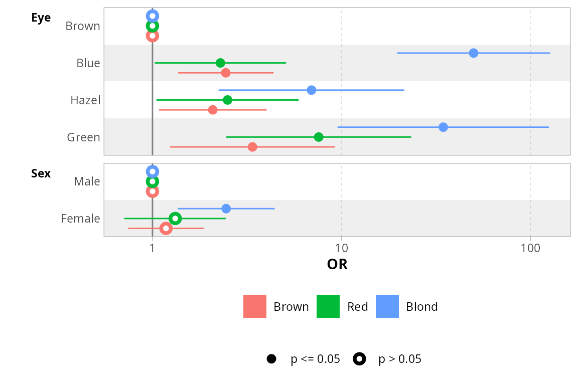 By default, for categorical variables using treatment and sum contrasts, reference rows will be added and displayed on the graph.