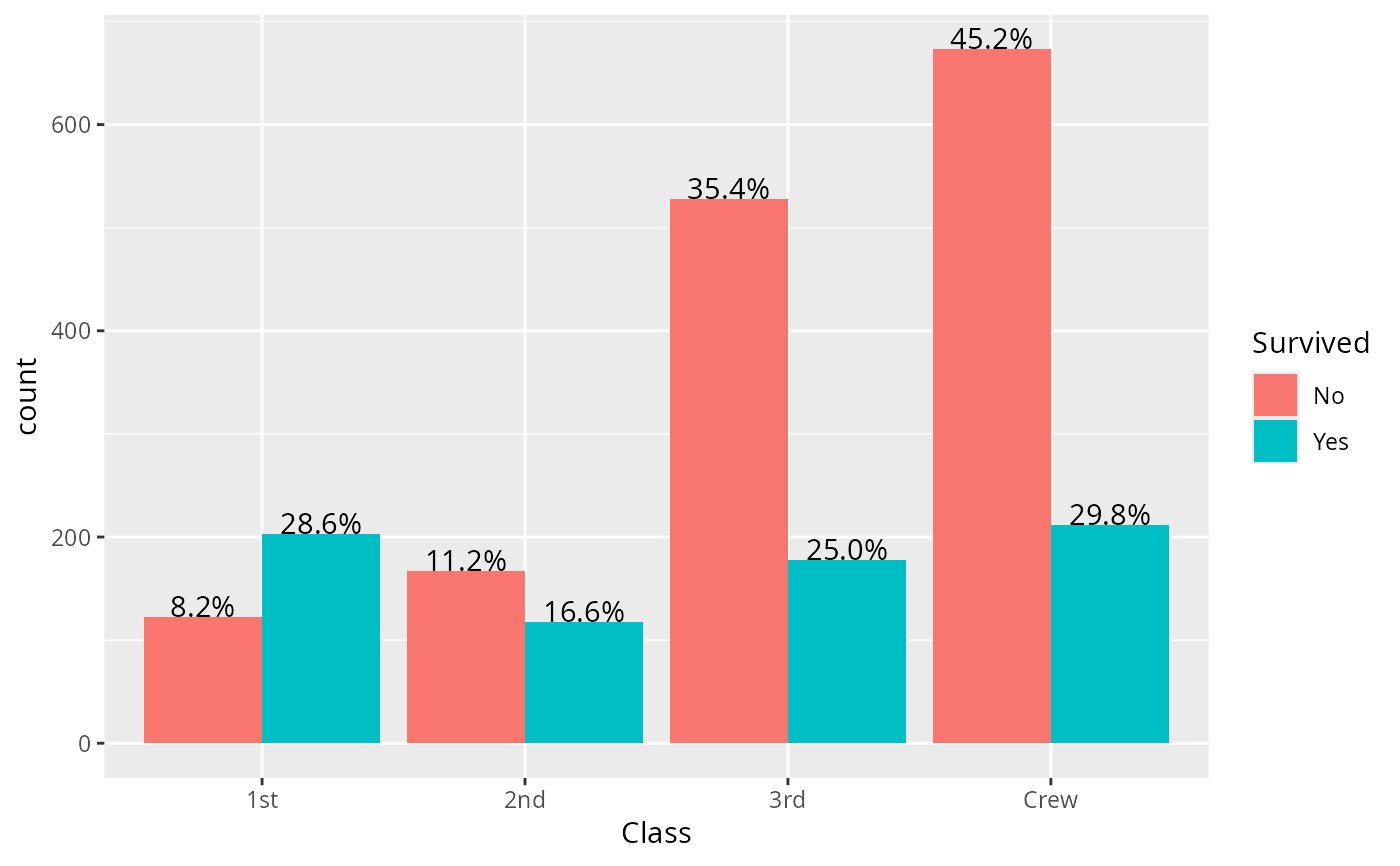 aes(x = Class, fill = Survived, weight = Freq, by = Class) +