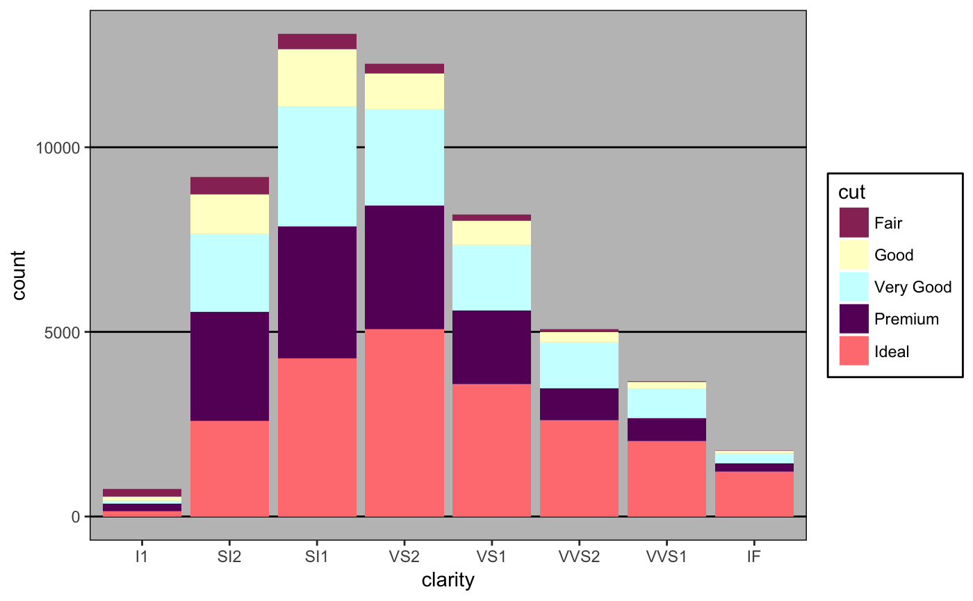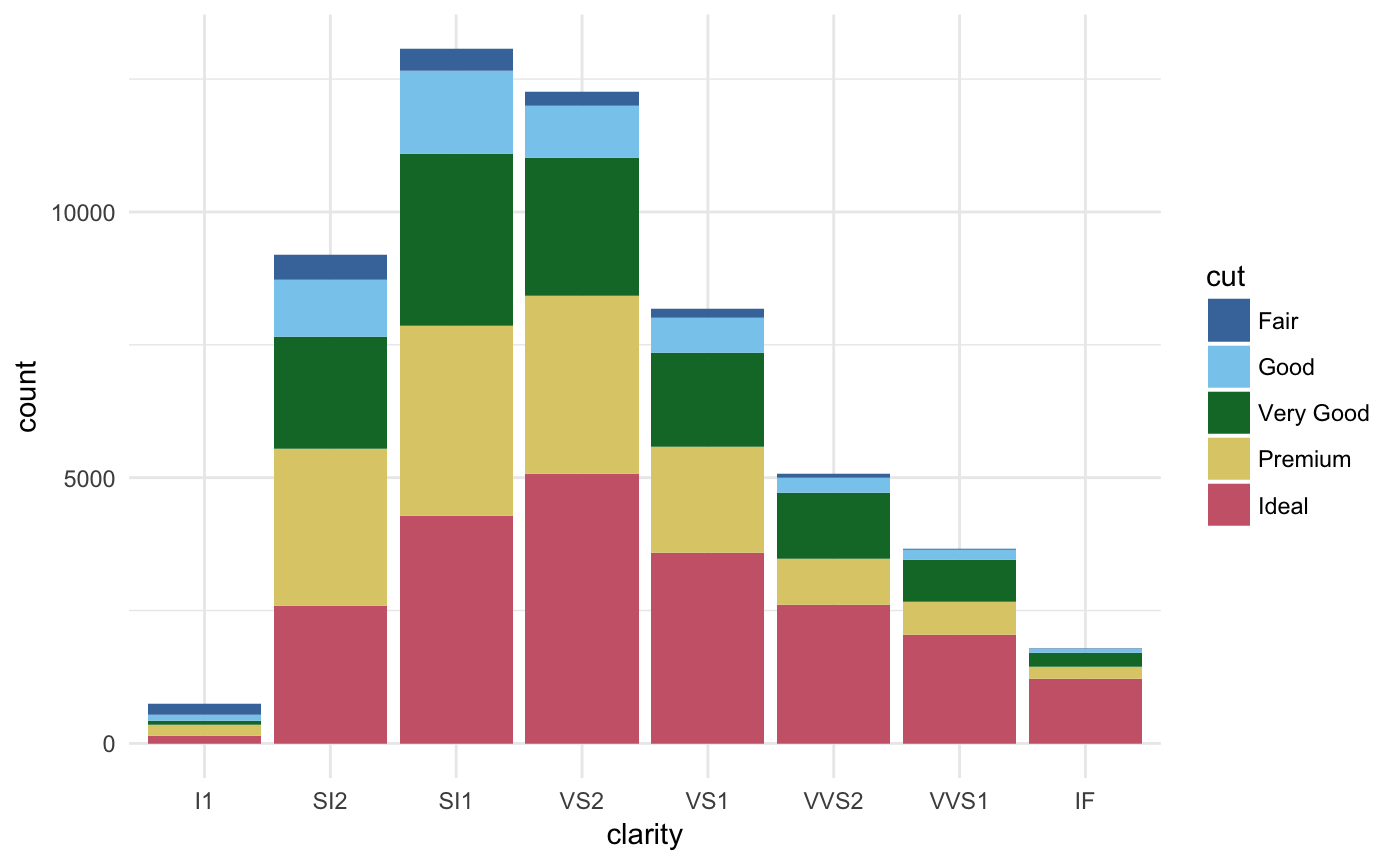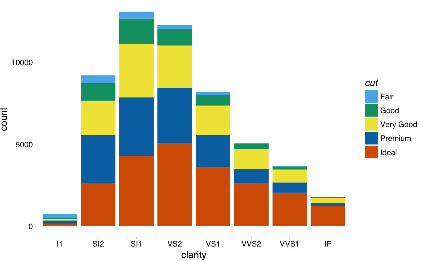 ggplot(diamonds, aes(x = clarity, fill = cut)) +