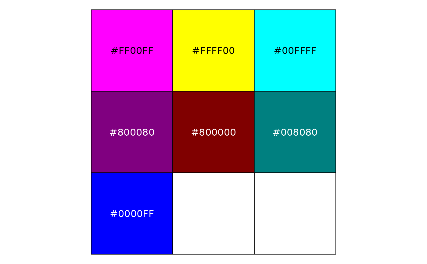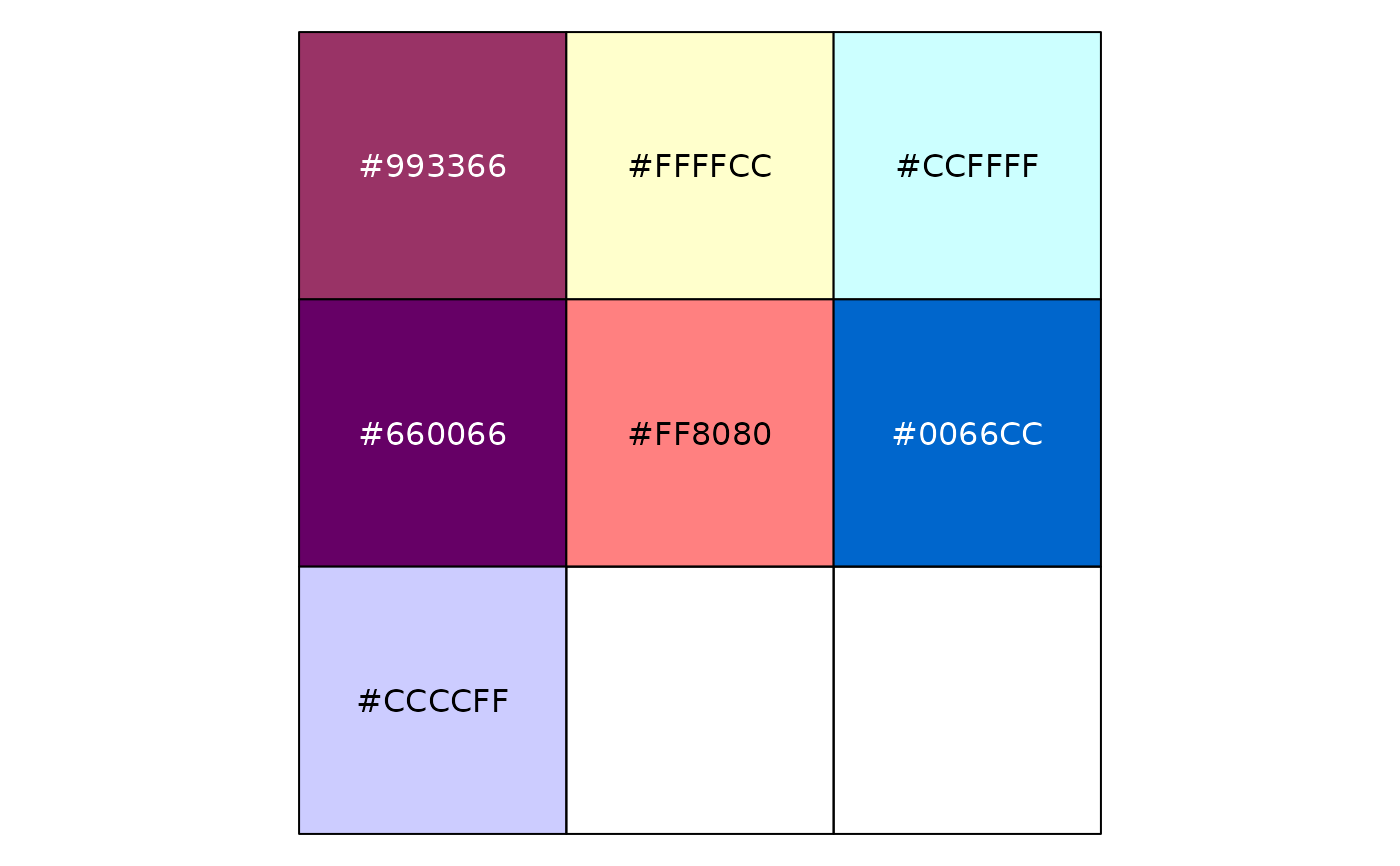 The color palettes used in Microsoft Excel 97 (and up until Excel 2007). Use this for that classic ugly look and feel. For ironic purposes only. 3D bars and pies not included. Please never use this color palette.