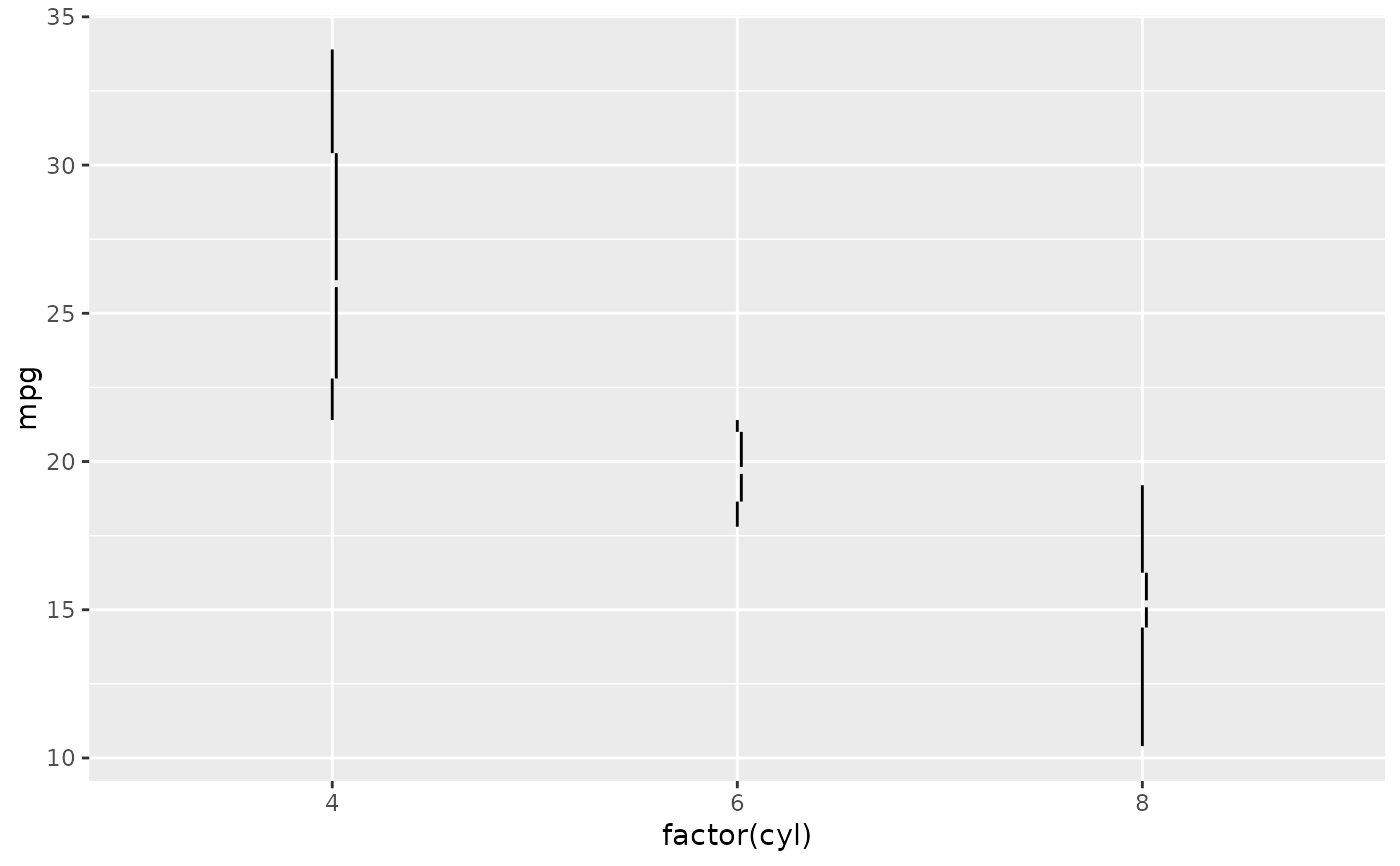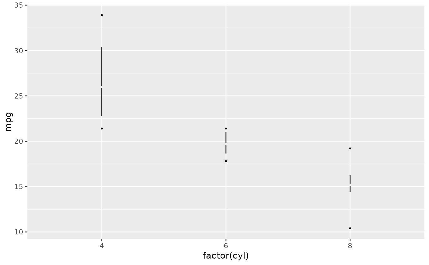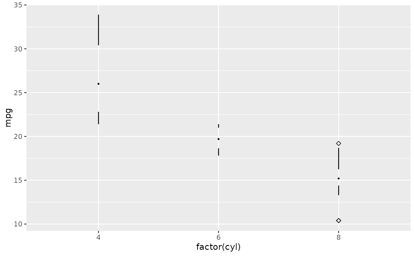p <- ggplot(mtcars, aes(factor(cyl), mpg))