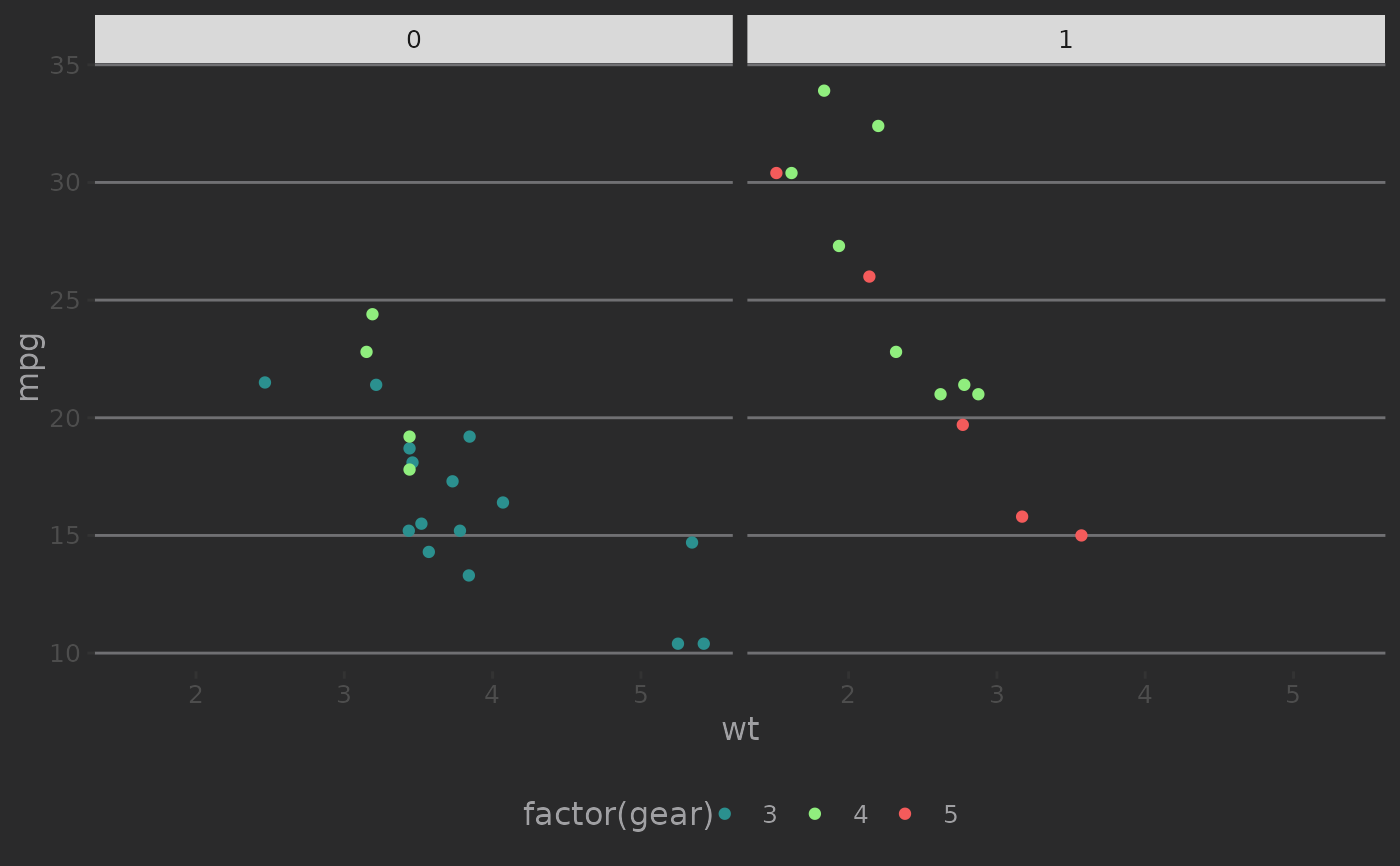 p <- ggplot(mtcars) + geom_point(aes(x = wt, y = mpg,
