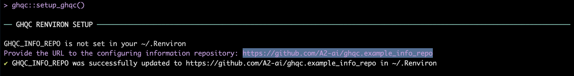 1. An environmental variable, GHQC_CONFIG_REPO, must be set to the custom configuration repository url in “~/.Renviron”.