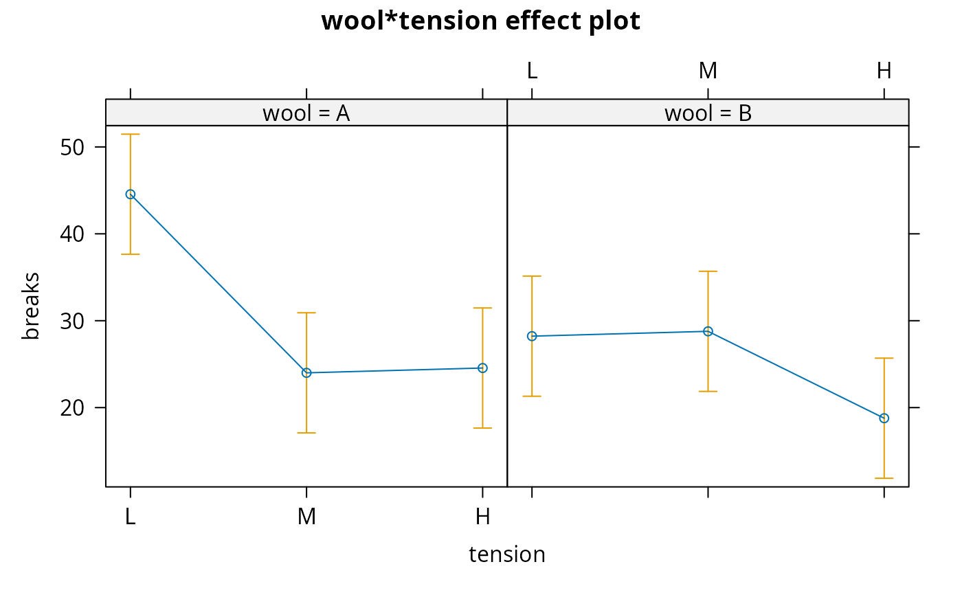 warp.lm <- glmmTMB(breaks ~ wool * tension, data = warpbreaks)