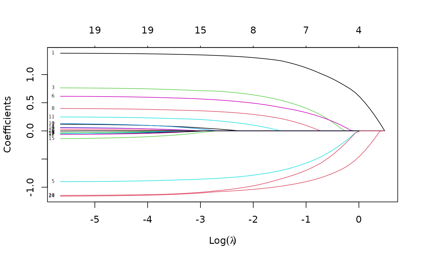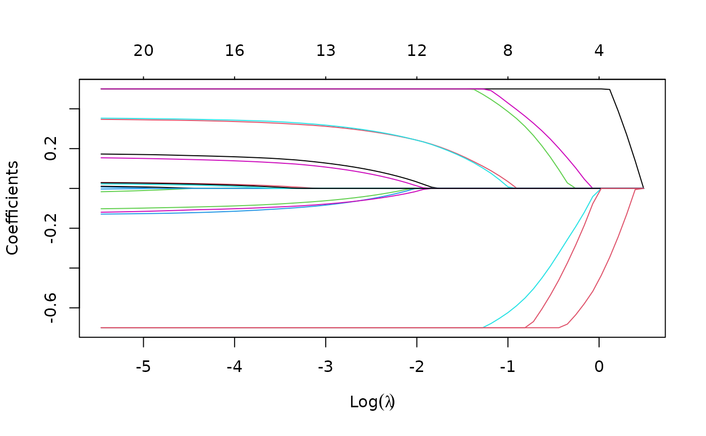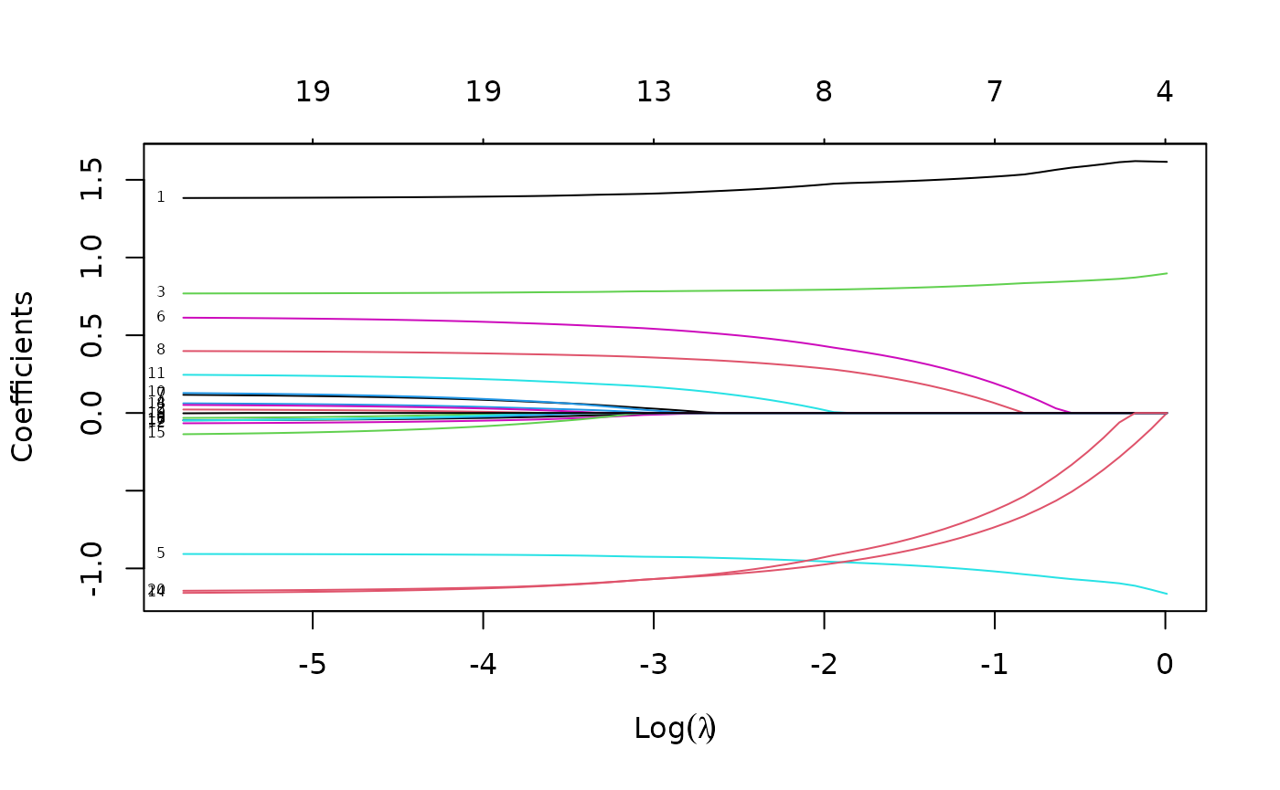 length(fit$lambda) # number of lambda values fit## [1] 67
