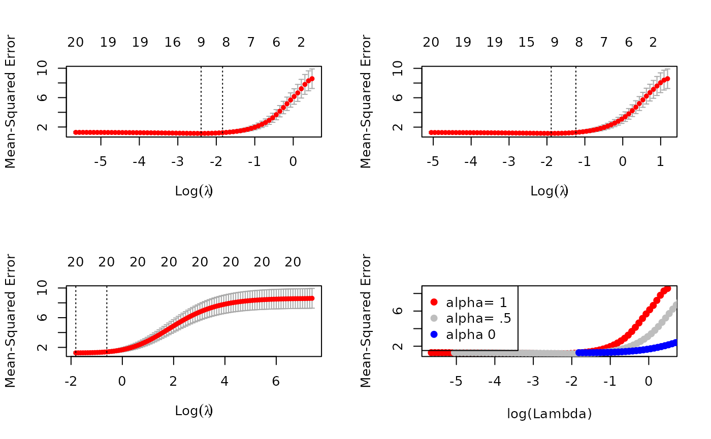 for the lasso or elastic net penalty at a grid of values (on the log