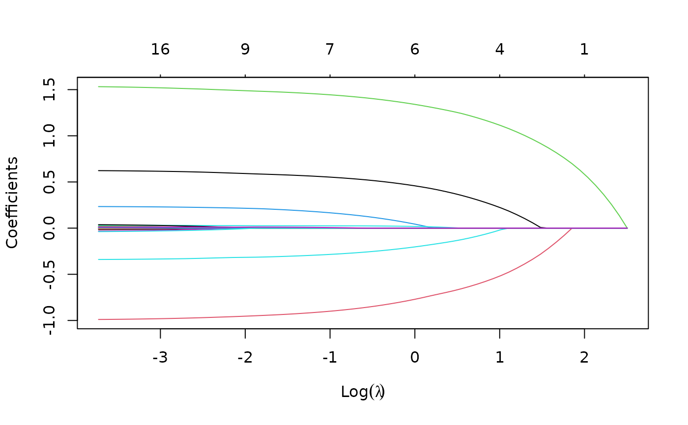 length(fit$lambda) # number of lambda values fit## [1] 11