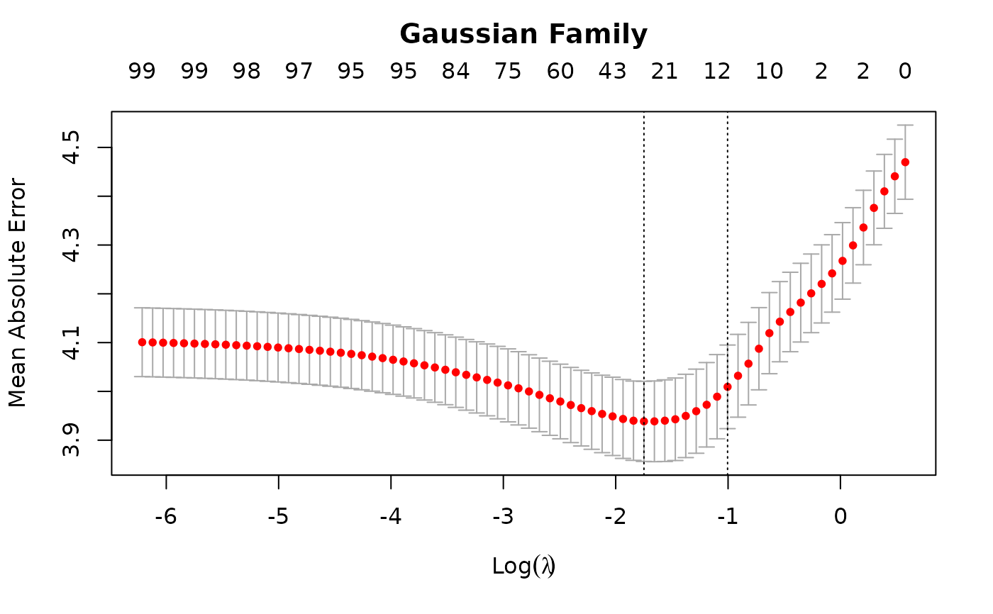 cvob1a = cv.glmnet(x, y, type.measure = "mae")
