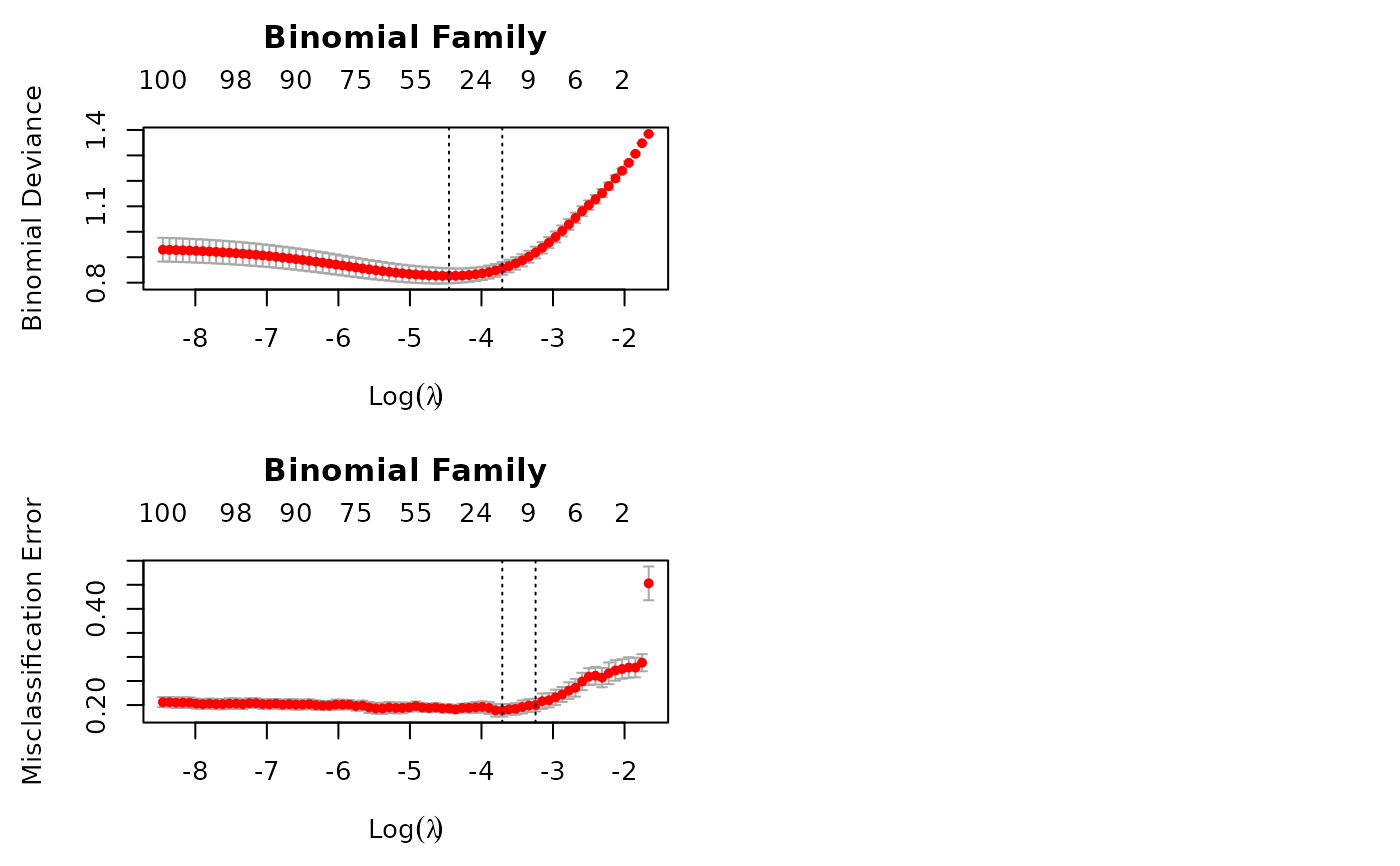 cvob2 = cv.glmnet(x, ly, family = "binomial")