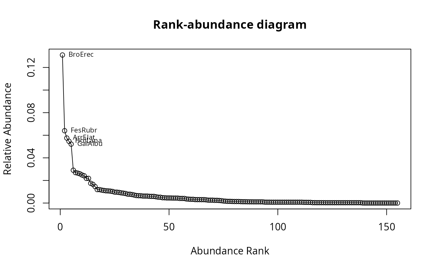 This function draws a rank-abundance curve for community data. You can optionally add labels for a selected number of species.