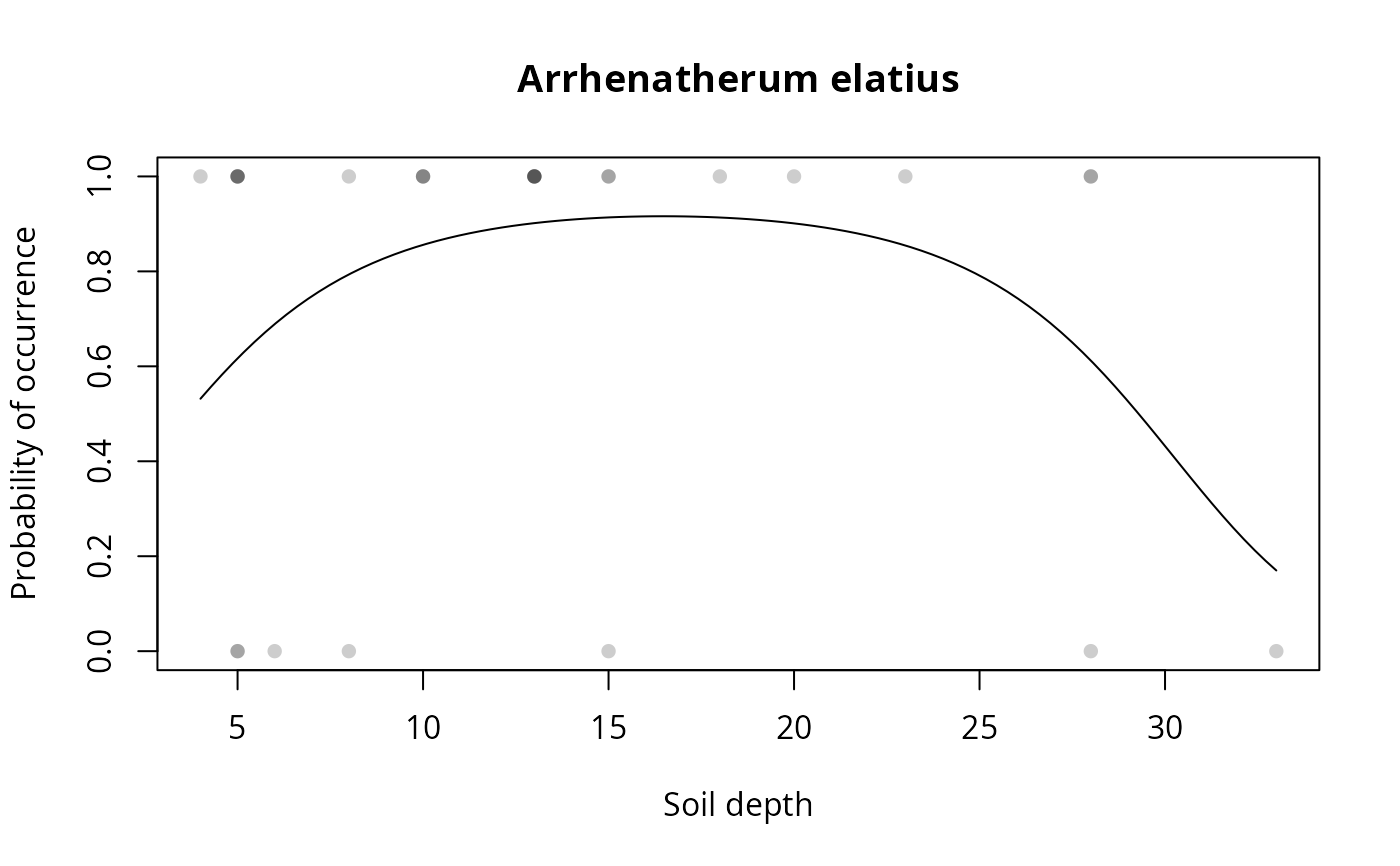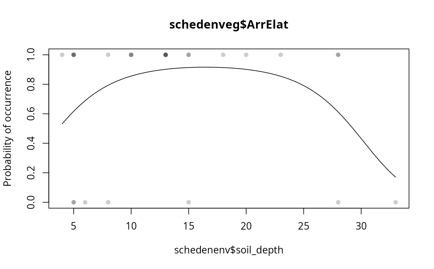 specresponse(schedenveg$ArrElat, schedenenv$soil_depth, points = TRUE)