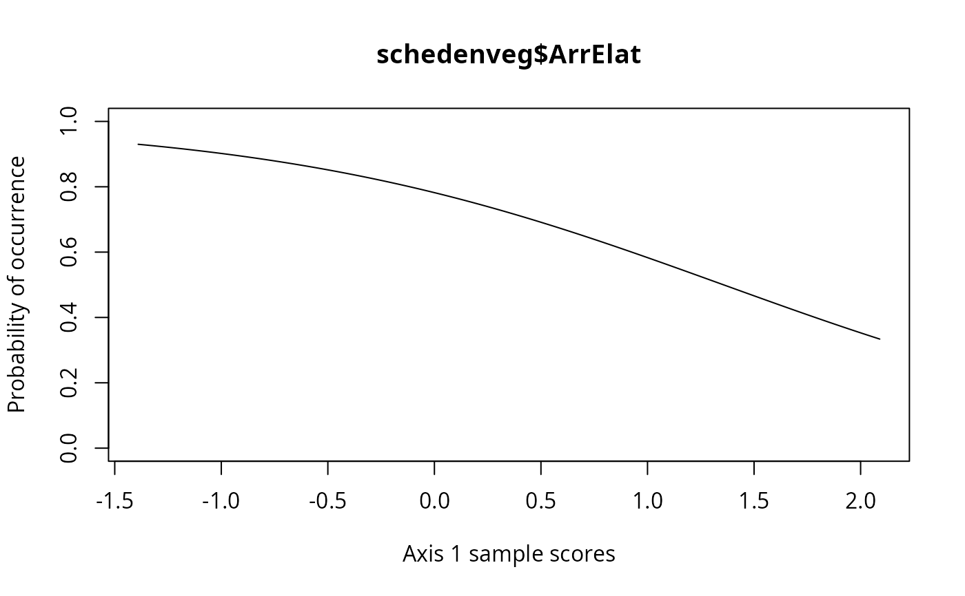 specresponse(schedenveg$ArrElat, scheden.dca, method = "ord", model = "linear")