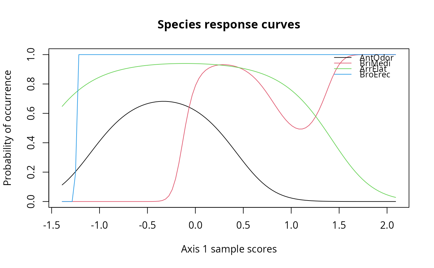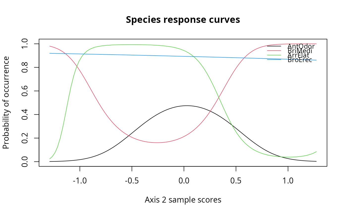 method = "env"fits a response curve to environmental variables. Alternativelymethod = "ord"fits a response along ordination axes.- axis