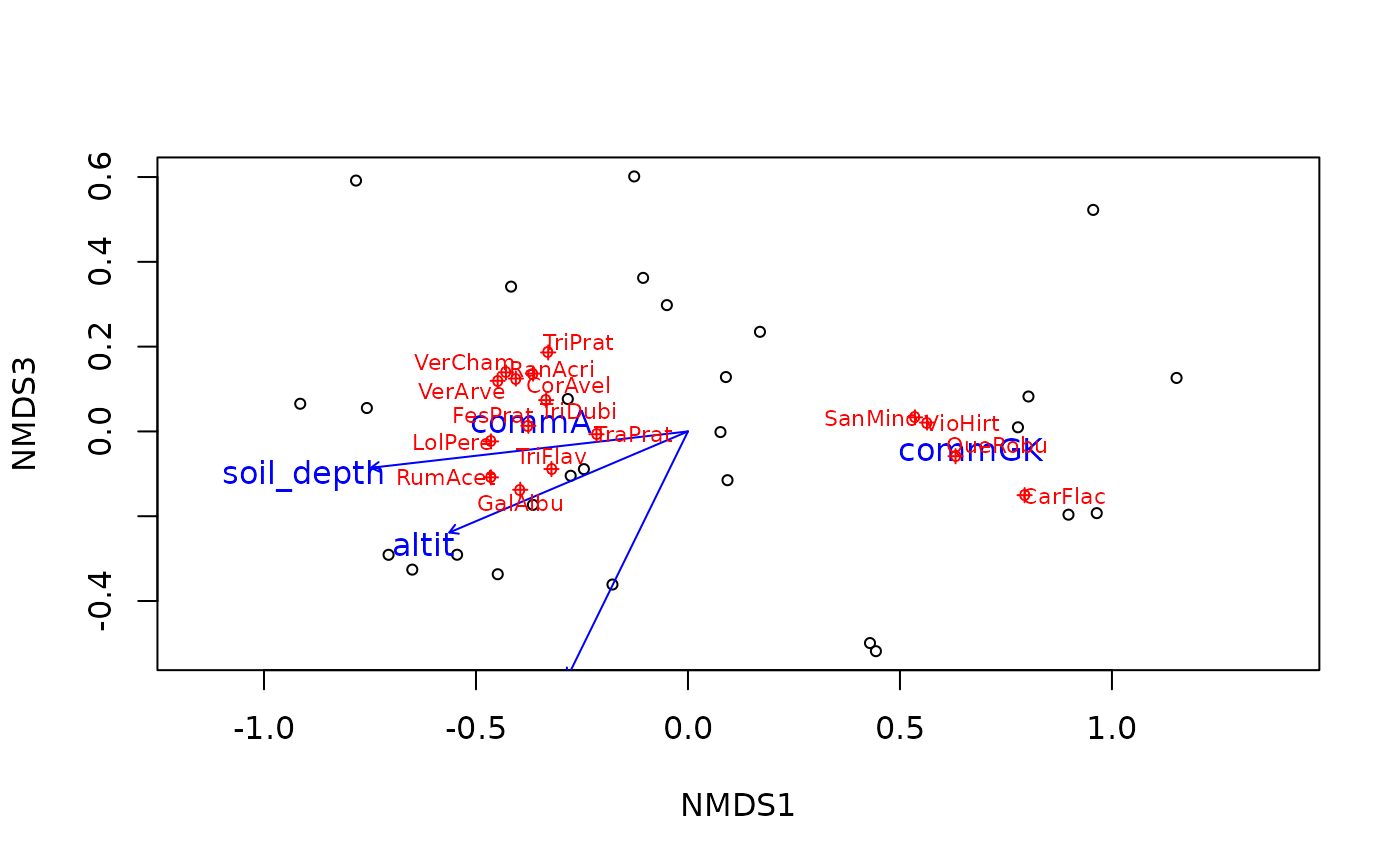 env13 <- envfit(nmds, schedenenv, choices = c(1, 3))