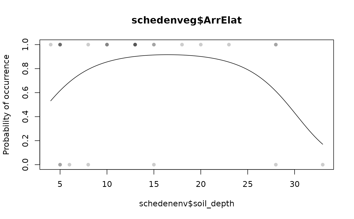 specresponse(schedenveg$ArrElat, schedenenv$soil_depth, points = TRUE)