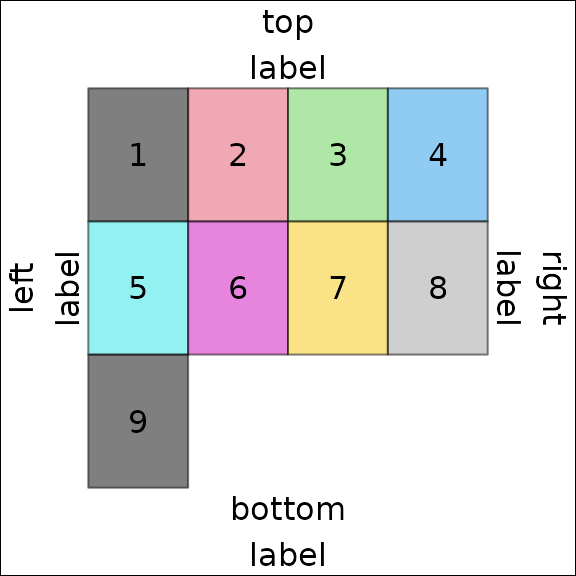 where we note the dual nature of a gtable: it looks like a matrix, in the sense that it defines a rectangular table of nrow x ncol cells, but it’s also a list with an arbitrary length, defining where and how many grobs are to be placed in this tabular layout.
