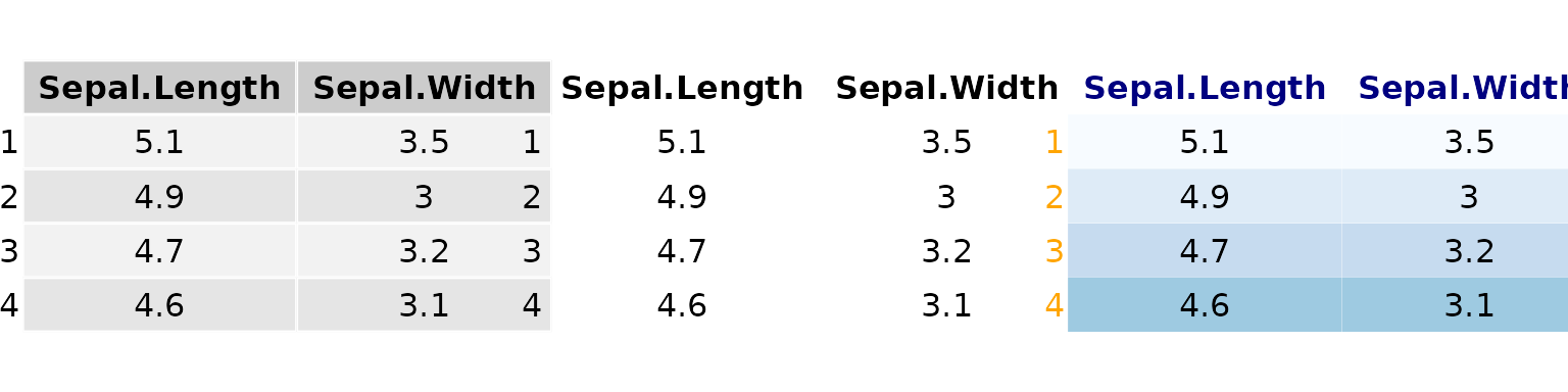 rowhead=list(fg_params=list(col="orange", fontface=3L)))