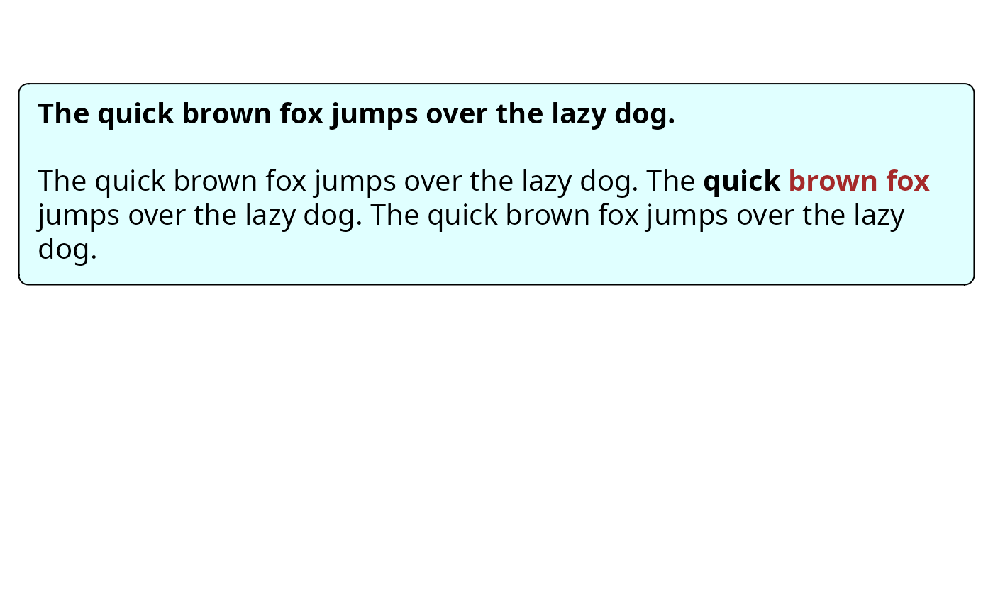 The **quick <span style='color:brown;'>brown fox</span>** jumps over the lazy dog.