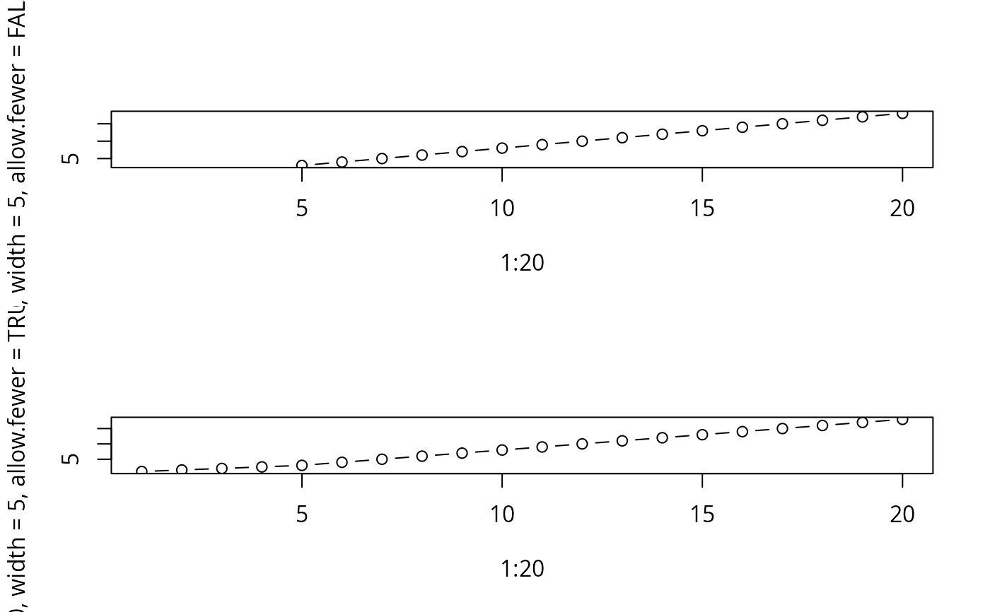 running(1:20, width = 5, align = "center", pad = TRUE)