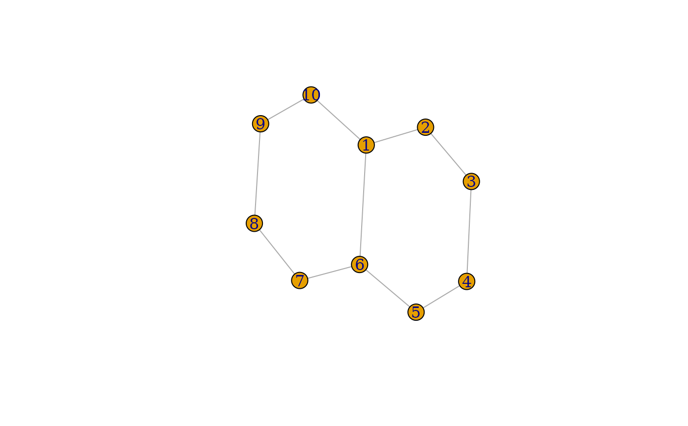 make_ring(10) %>% add_edges(c(1, 6)) %>% plot()