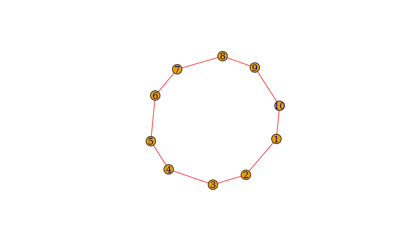 make_( ring(10), with_edge_( color = "red", weight = rep(1:2, 5) ) ) %>% plot()
