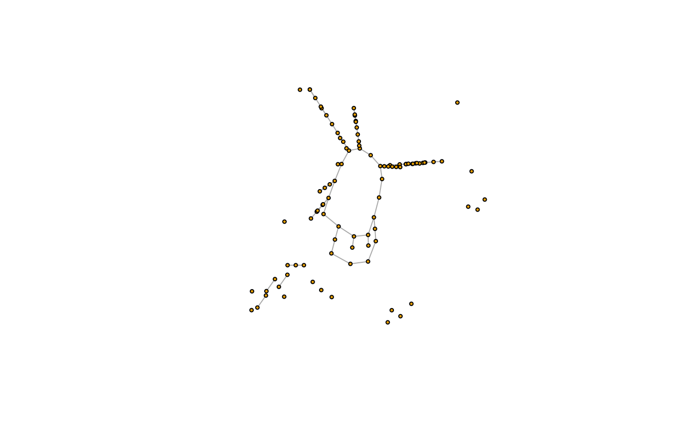 plot(g, layout = l, vertex.label = NA, vertex.size = 3)