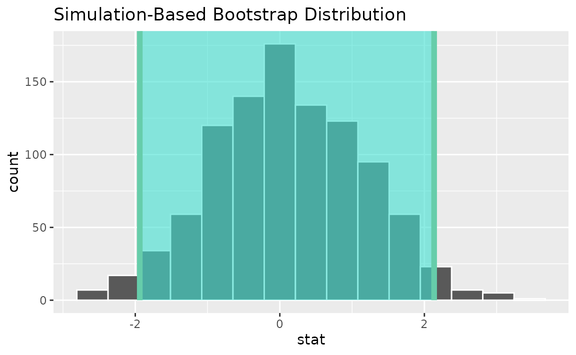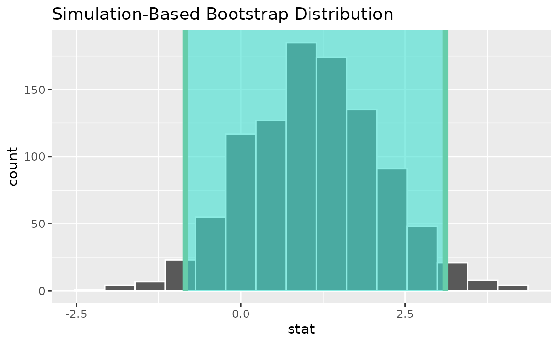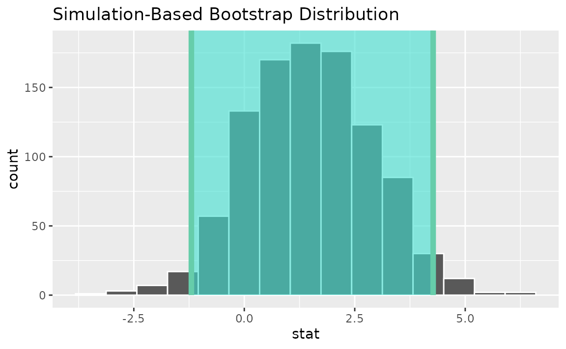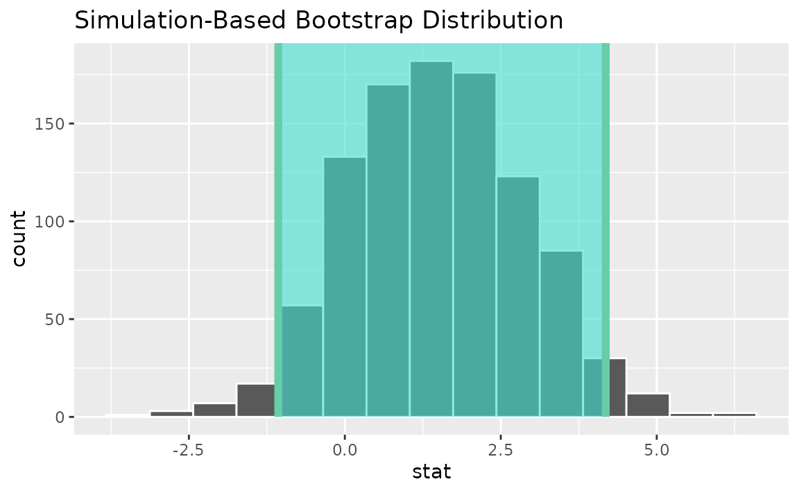 calculate(stat = "t")Use the bootstrap distribution to find a confidence interval,