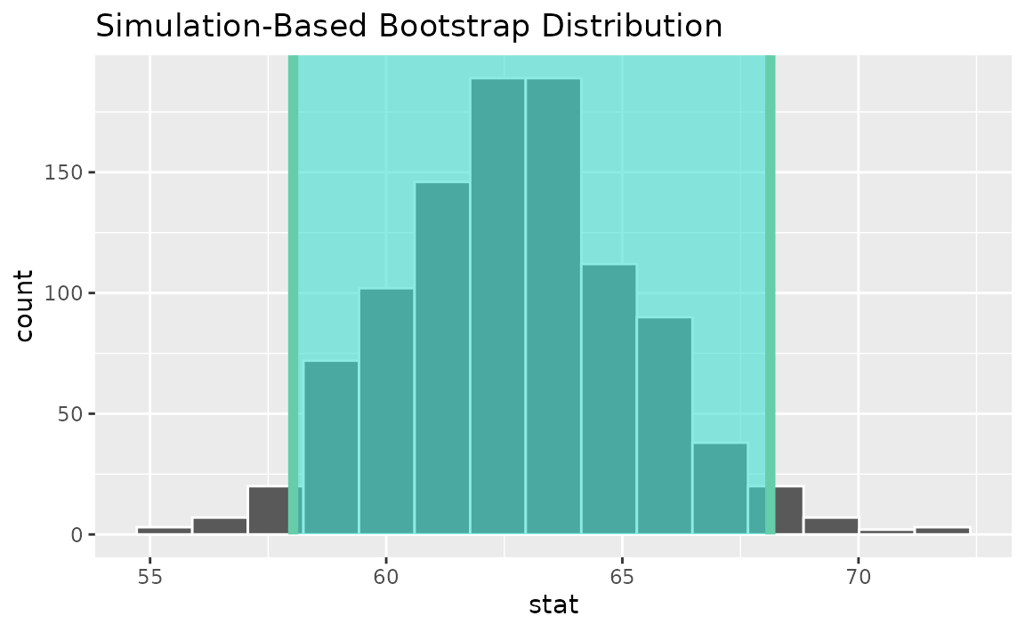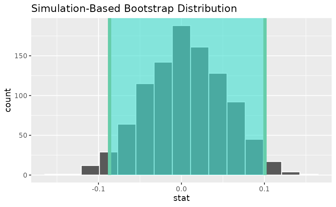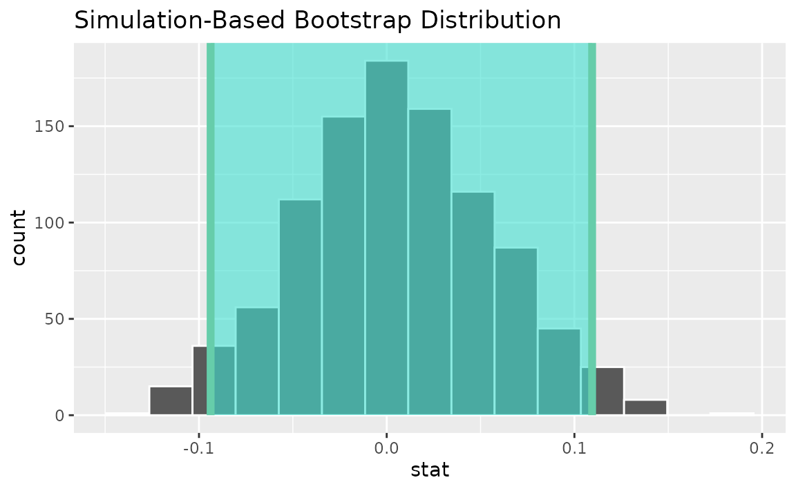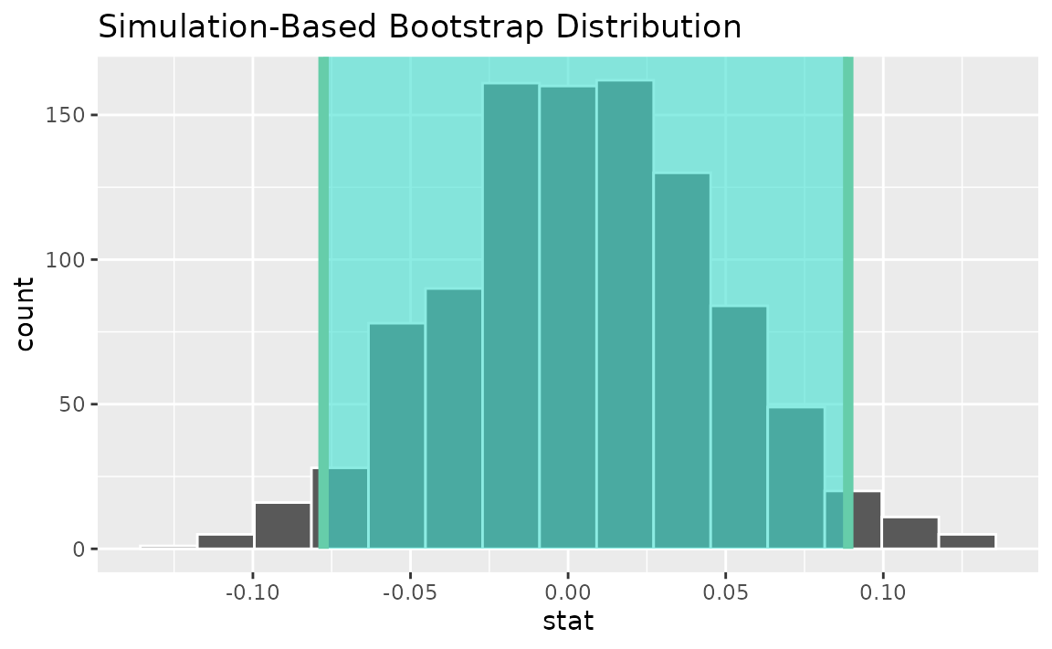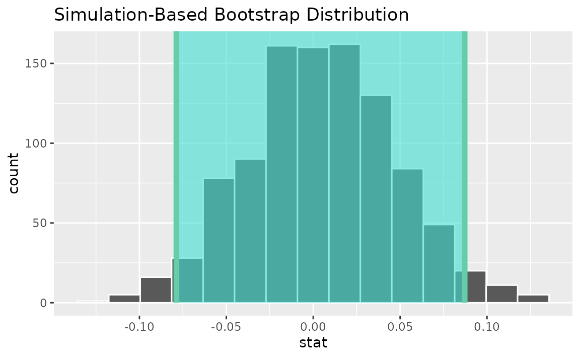 calculate(stat = "t")Use the bootstrap distribution to find a confidence interval,