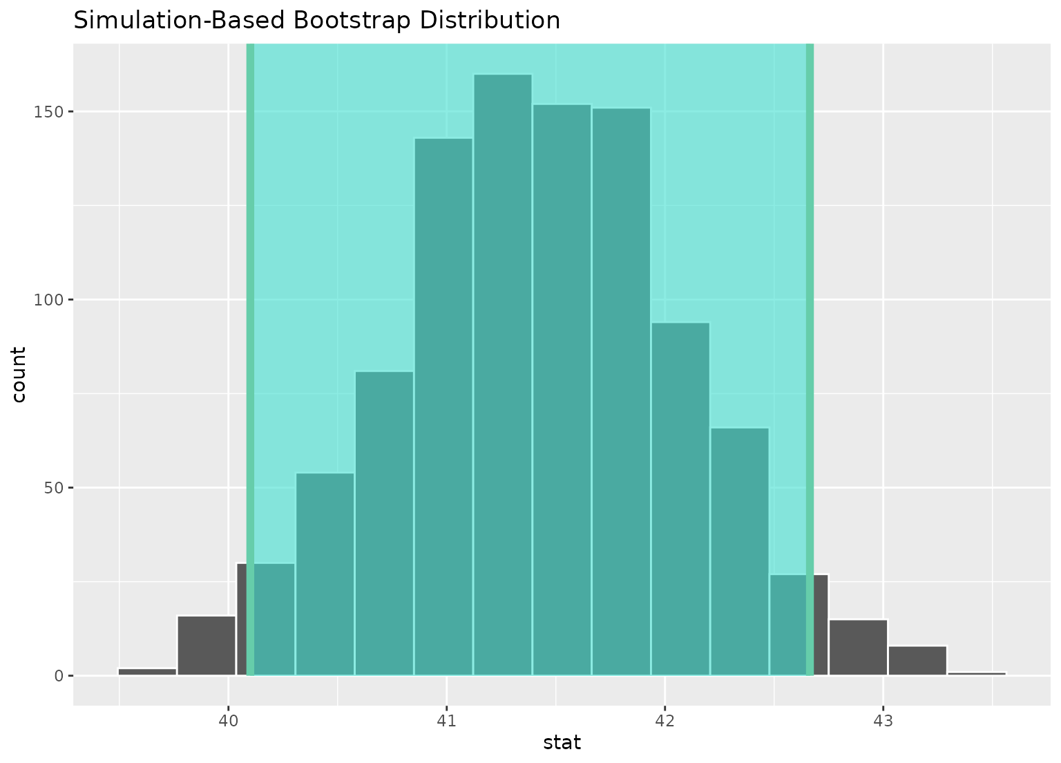 shade_ci(endpoints, color = "mediumaquamarine", fill = "turquoise", ...)The lower and upper bounds of the interval to be plotted.