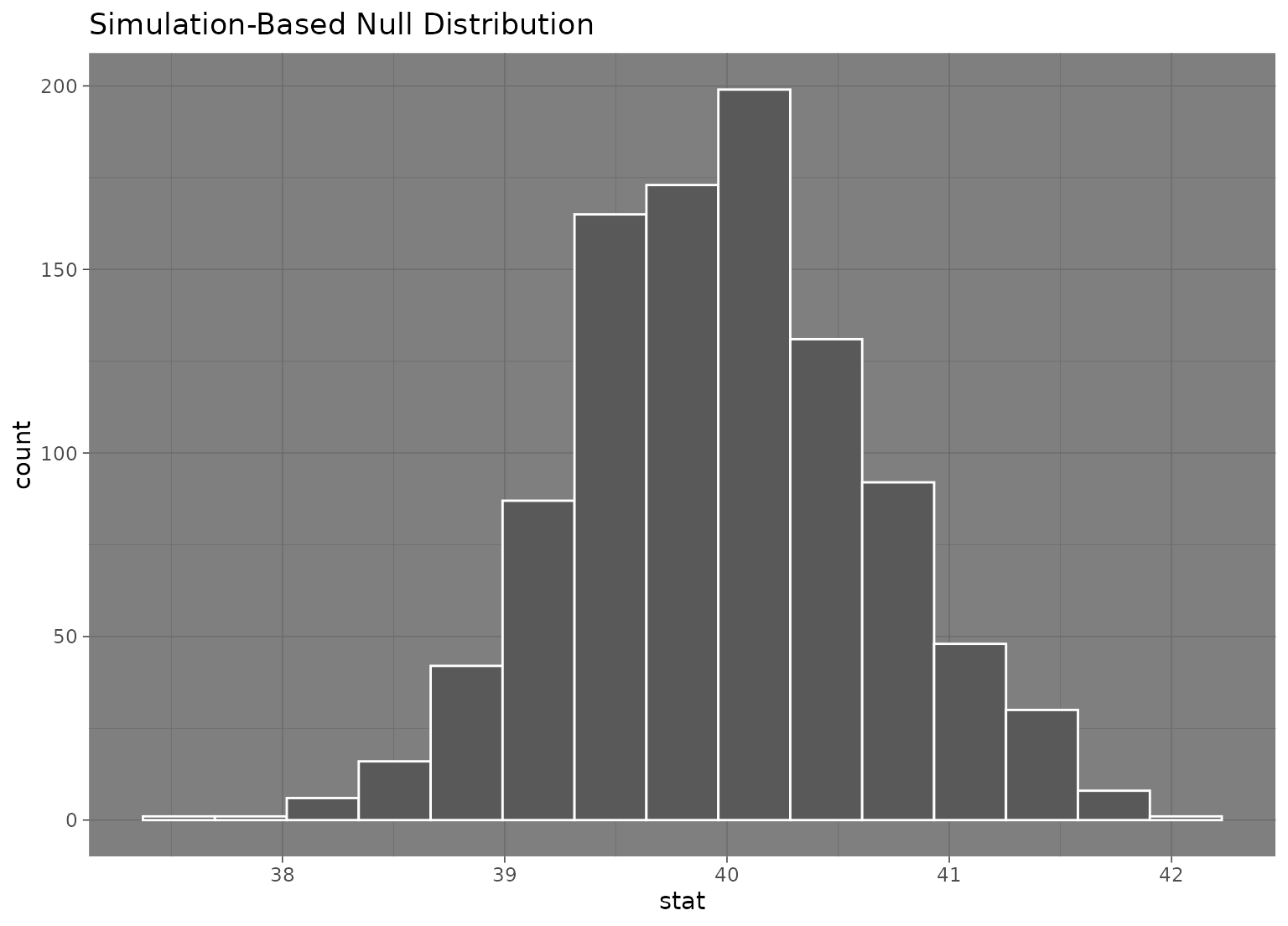 # use a theorized statistic (i.e. one of t, z, F, or Chisq)