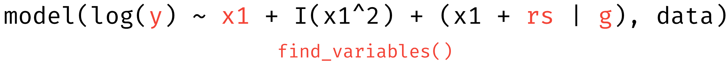 # find all variables, i.e. also quadratic or log-transformed predictors