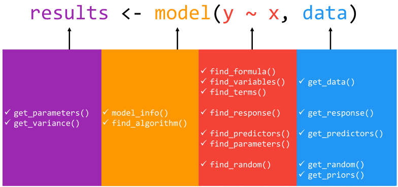 {insight} is an R-package that fills this important gap by providing a suite of functions to support almost any model. The goal of {insight}, then, is to provide tools to provide easy, intuitive, and consistent access to information contained in model objects. These tools aid applied research in virtually any field who fit, diagnose, and present statistical models by streamlining access to every aspect of many model objects via consistent syntax and output.