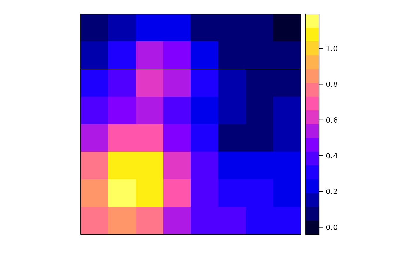 image(IL,breaks=breaks,col=colors,main="Franke function 1",