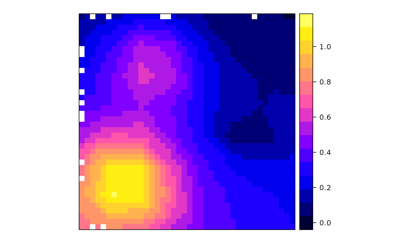 image(IS,breaks=breaks,col=colors,main="Franke function 1",